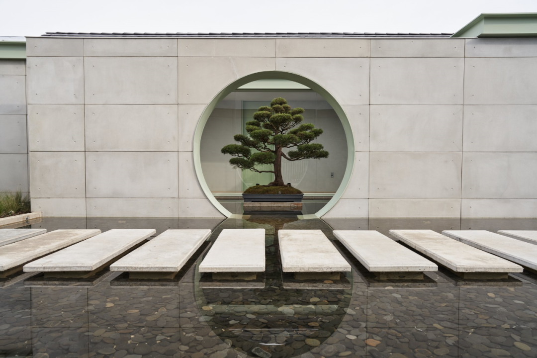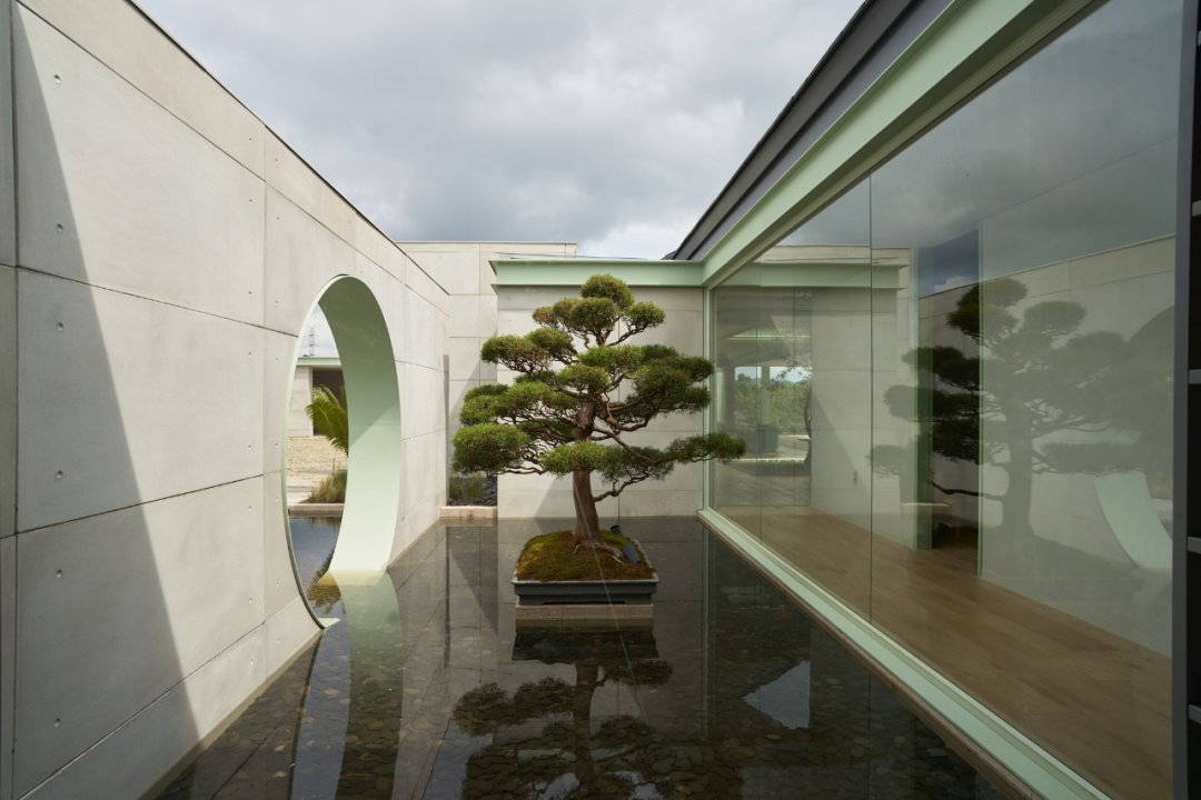 别墅前的庭院还根据风水原理设计了一处盆景景观▽