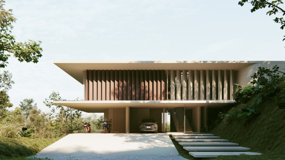这个独栋别墅同样是 5Solidos 做的概念设计,房子位于半山腰,远离城市喧嚣,是一个绝对宁静、清幽的居住空间。
