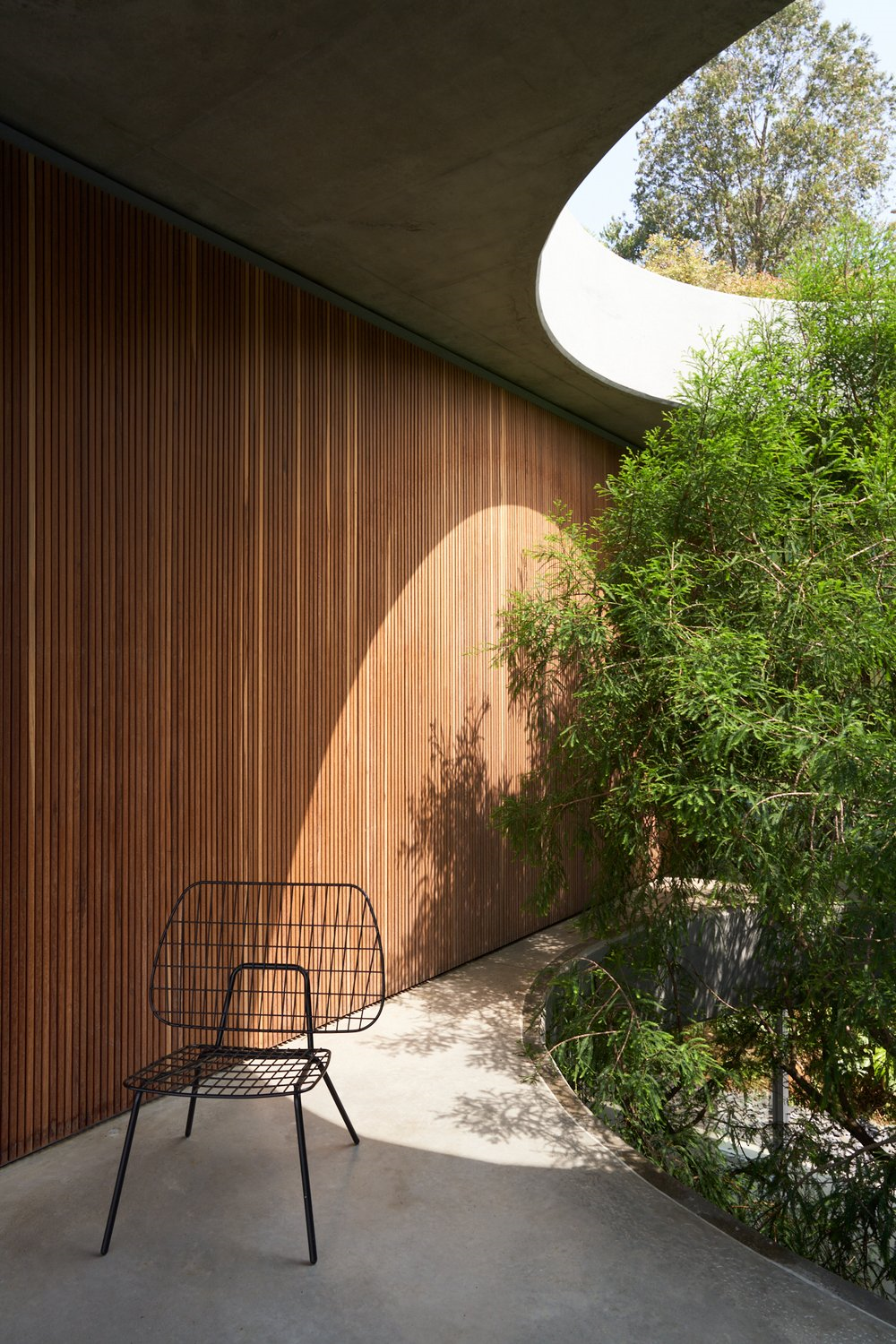 房子选用绿色作为主色调,突出了建筑与周围景观、自然空间的和谐一致,加上木材、混凝土材质的运用以及精致细节的表现,让房子具有可持续发展的特质。