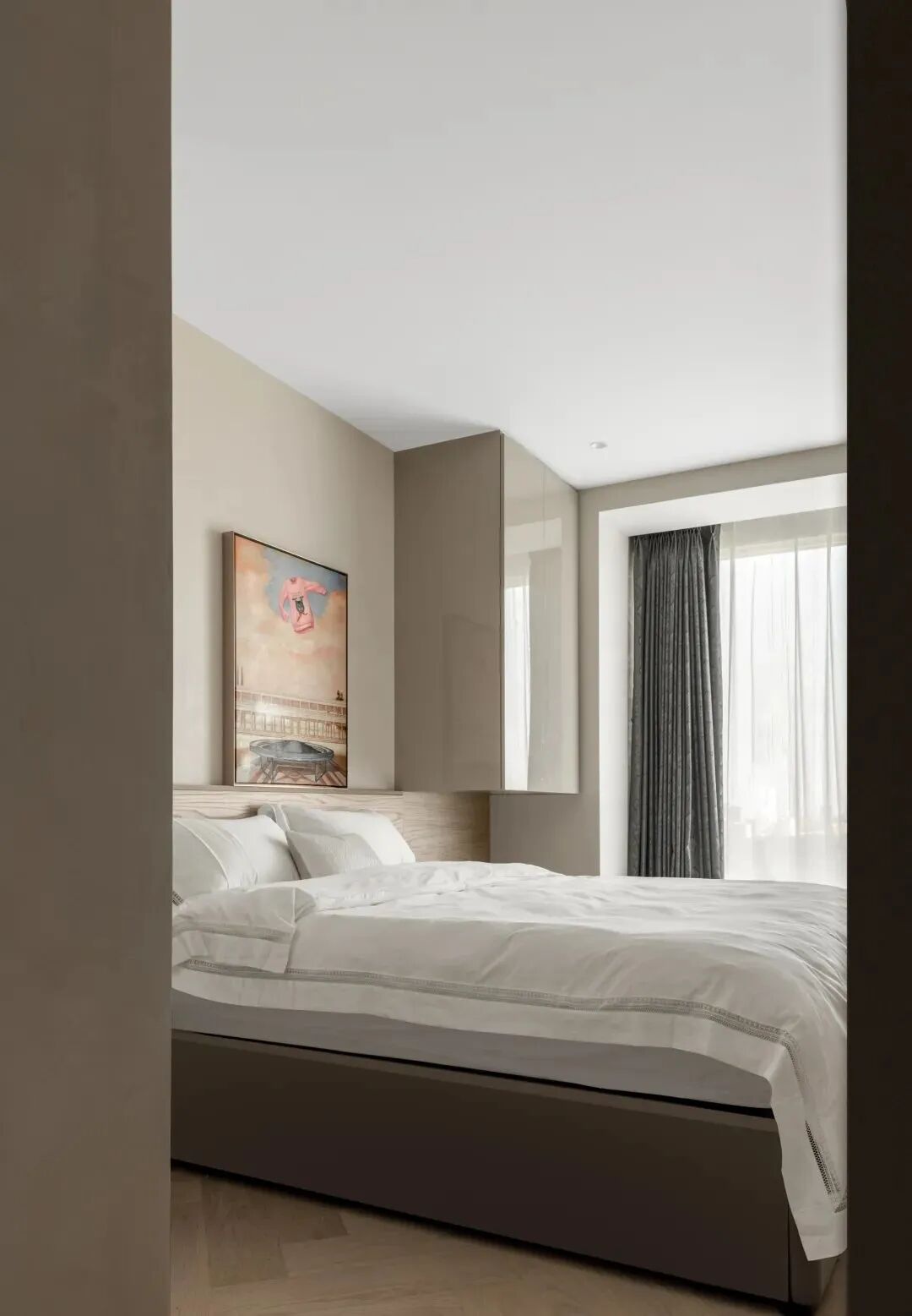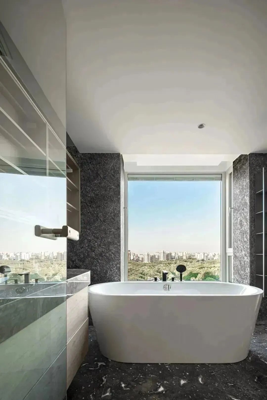 在这个358㎡的房间,坐在窗边便可一览北京天际线,好似与天空咫尺,伸手即可将星空揽入怀中,景致极佳。俯仰之间,尽现都市里的繁华。
