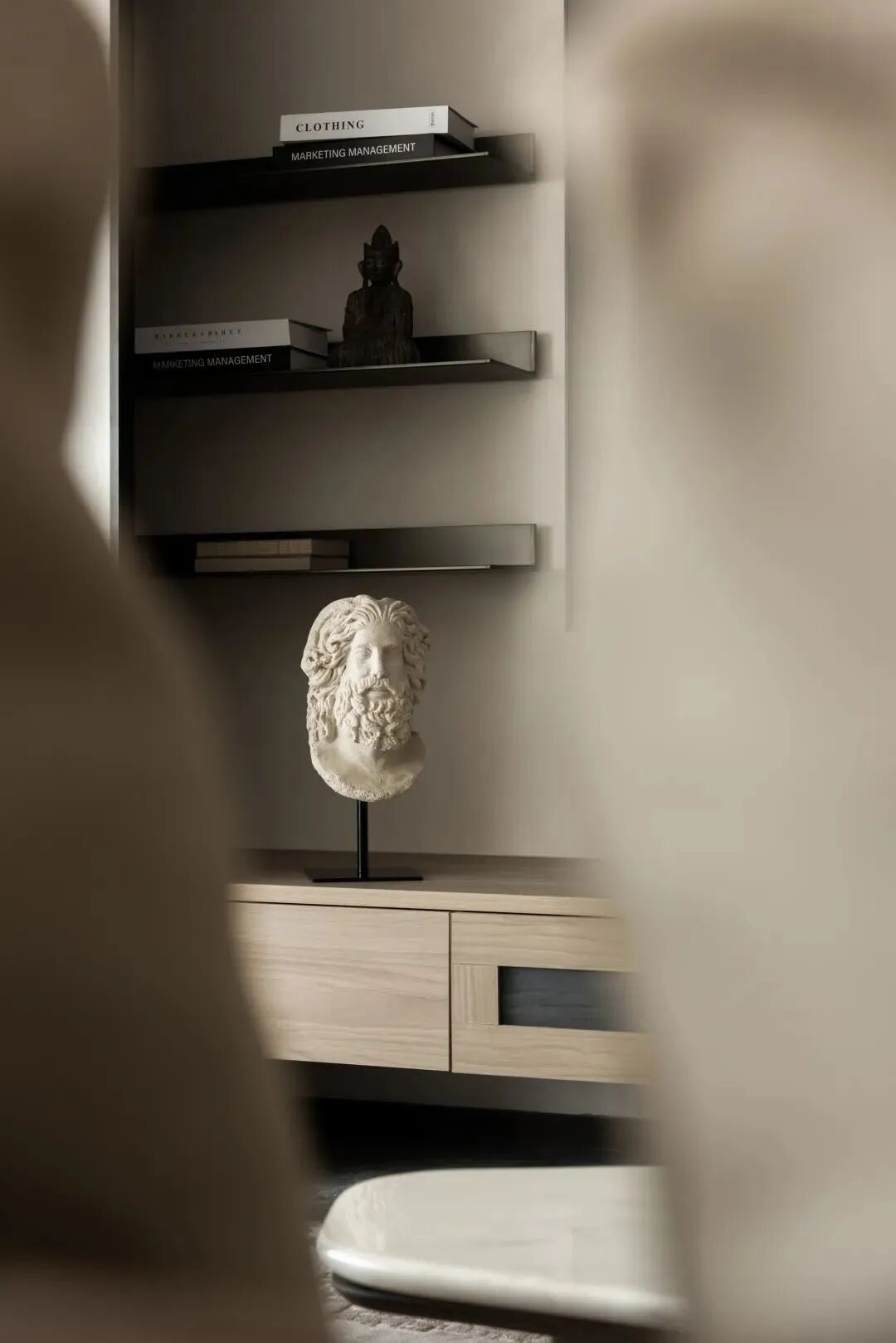 生活的烟火气,与艺术之美达成一种不经意的融汇,艺术渗入于生活的日常,除却艺术品本身,巧妙的设计构思,更是一幅绝美的艺术卷轴。