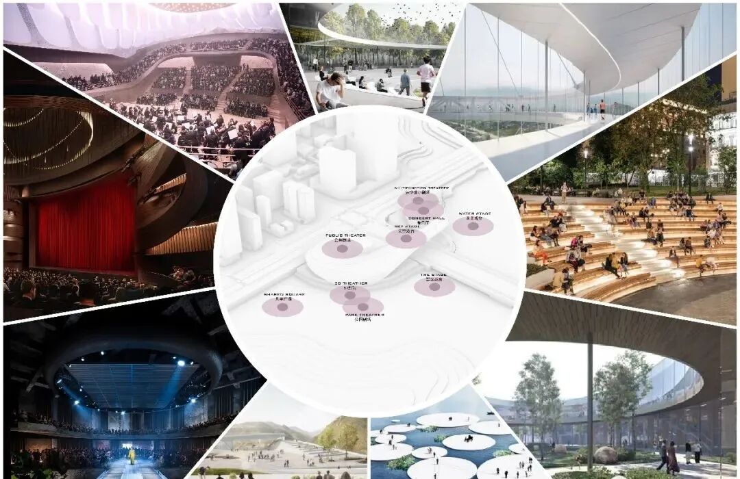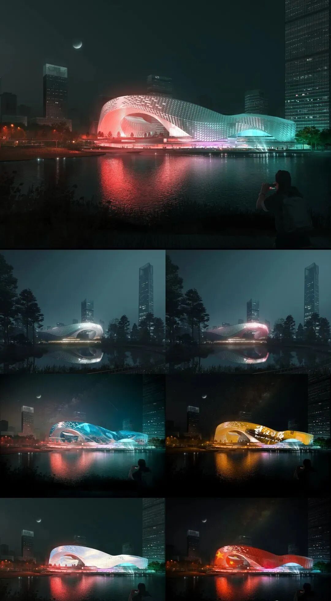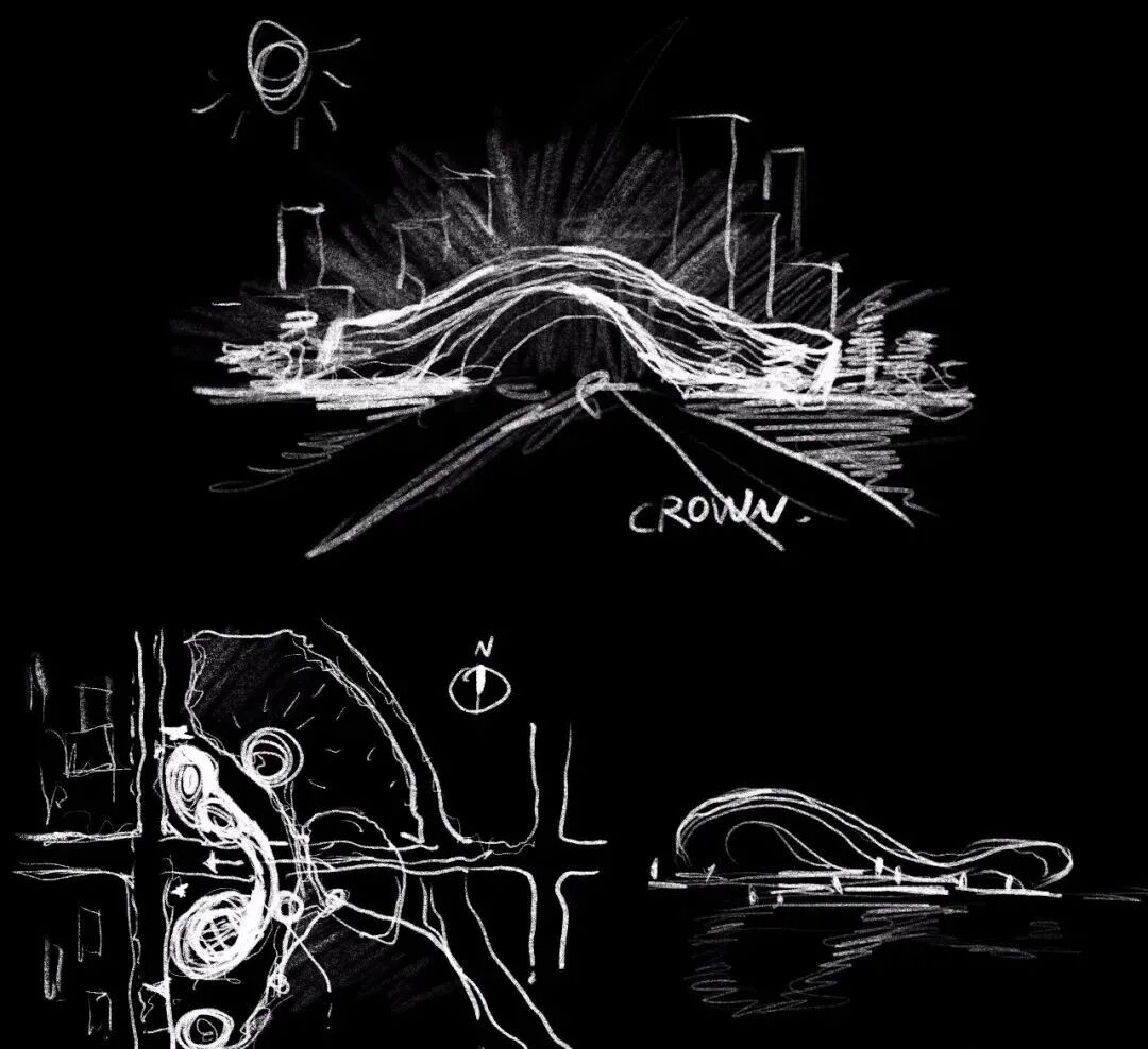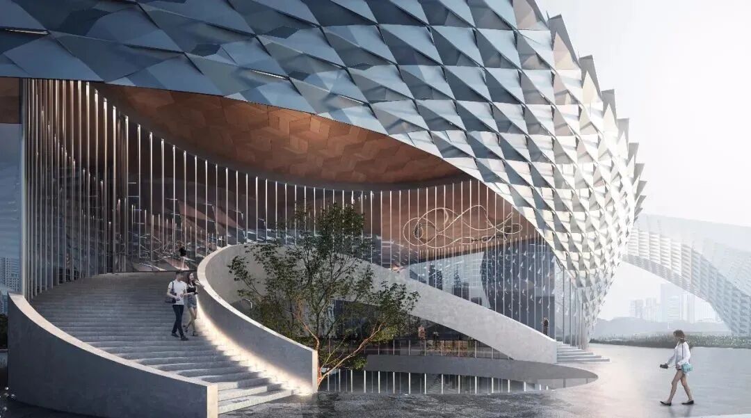 光谷大剧院、音乐厅拟建于光谷中心城北核心区,基地划分为南北两个地块,总用地面积为 2.13 公顷,建筑面积6.9万平方米。项目旨在为市民打造一个开放多元,充满活力的公共文化设施;提供一个享受生活与文化盛宴的时代性场所;也将成为彰显城市产城融合领先性的,品质超然的地标性景观。基于此,本案提出“水之舞,声之乐,光之冕”的设计概念。
