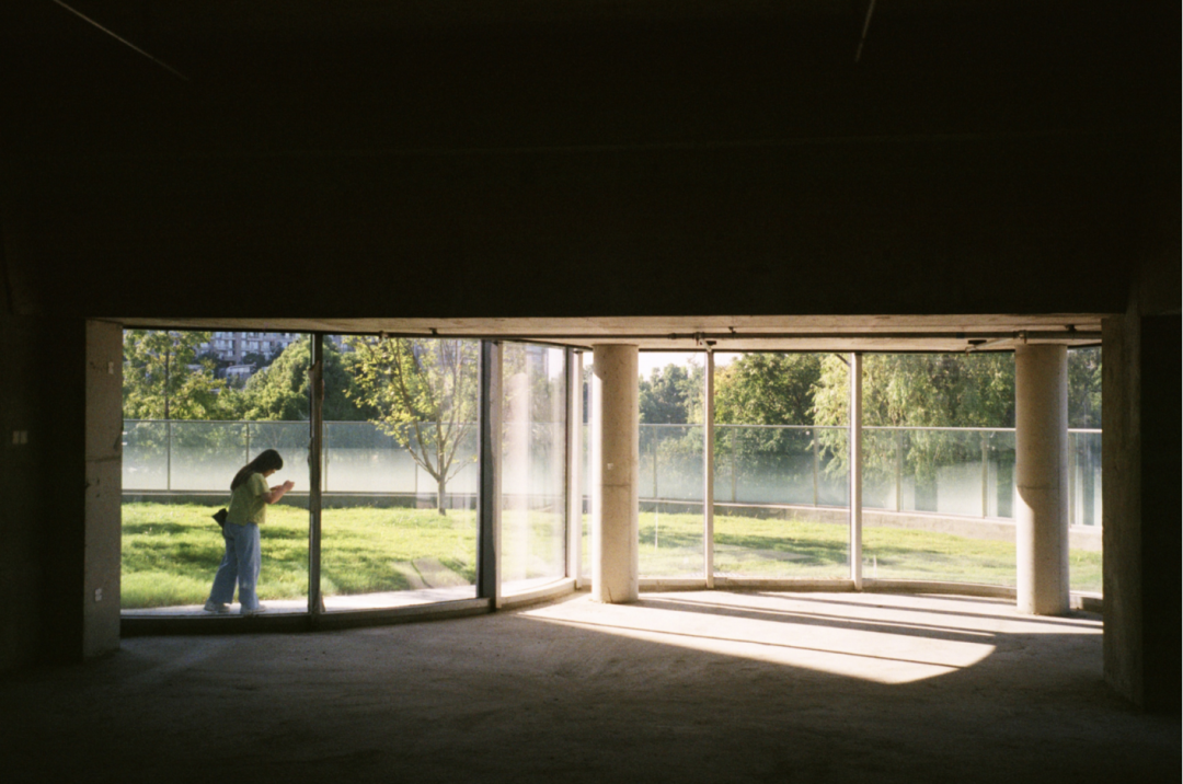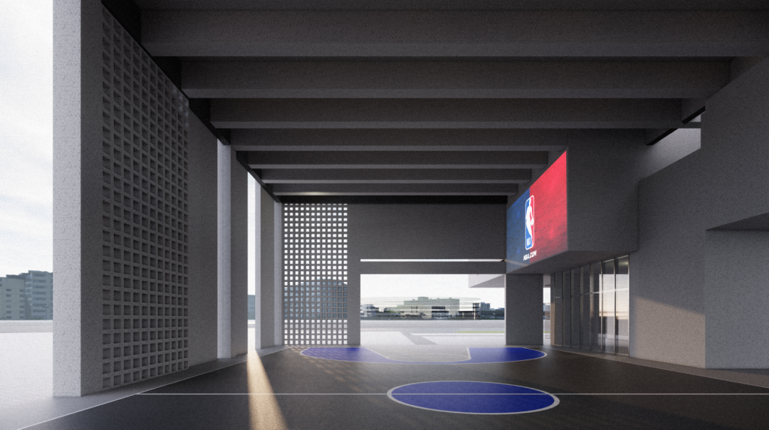 这是一个半户外的篮球场,它可以用作其他的功能,比如说羽毛场馆或者攀岩馆,因为有一些地方挑高有9米,所以我们还在和运营方讨论这部分能不能在未来有更多开发的潜力。我们计划向所有人展示这个建筑的原始结构,因为我觉得裸露的混凝土结构是有美感和力量感的。