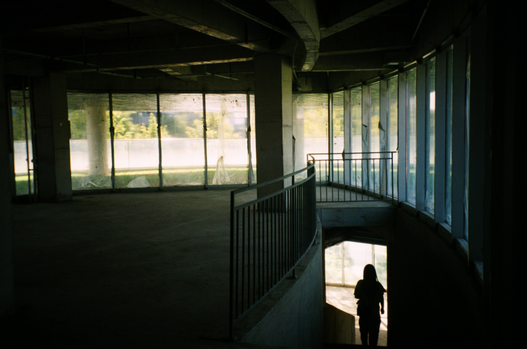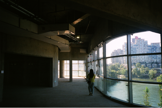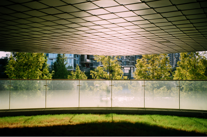 另外我还拍了一组有关空间序列的照片,这是一个室外的架空层空间,上面有一个巨大的悬挑结构,在一个狭长的范围内将湖畔的树木作为框景的对象。