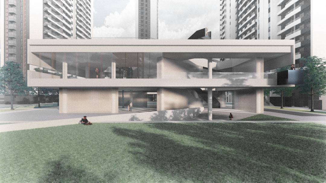 一层是完全开放的架空层,有咖啡厅、阅览室、工作坊,舞蹈音乐教室,美术教室等公共功能。