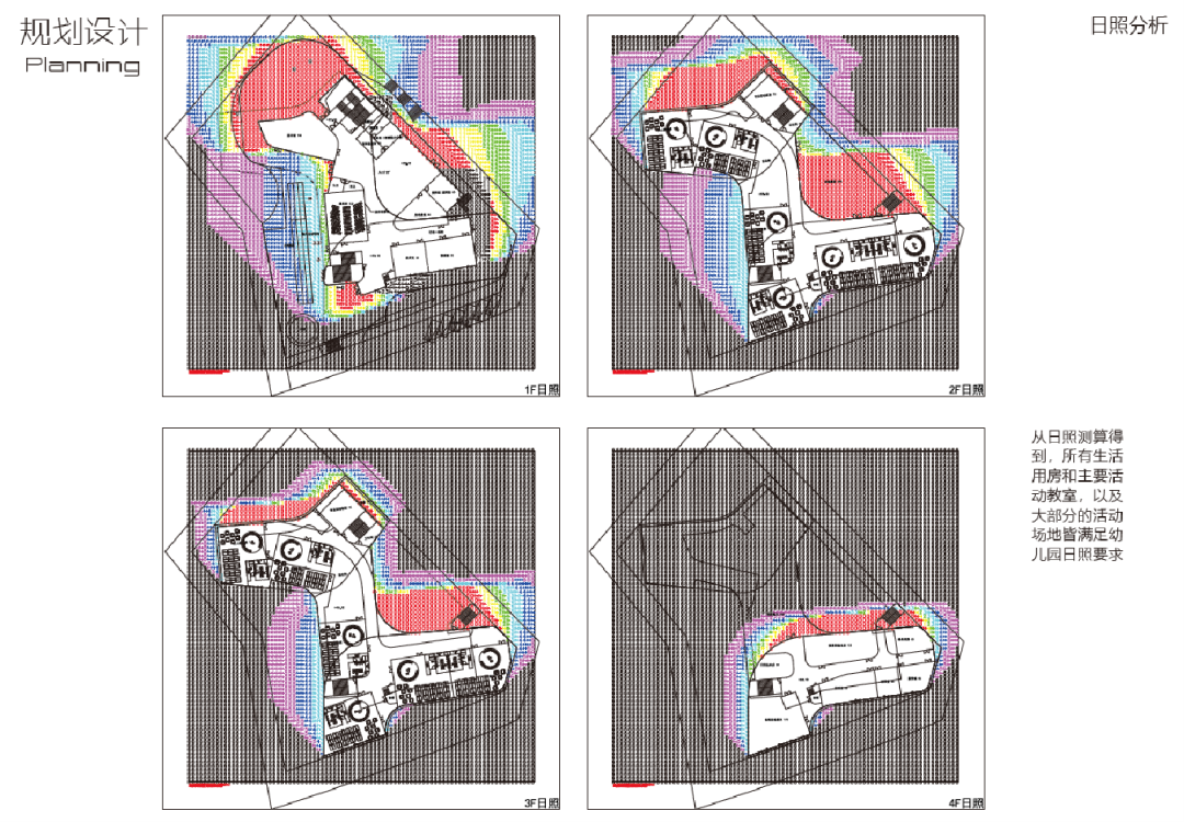 为了确保在冬至日满足国家规范的日照要求,规划设计几乎是一个以结果为前提的反推过程。但另一方面我们希望能够让这座建筑的设计和自然融为一体,因此在整个建筑立面上没有锐角和直角,建筑轮廓以大量曲线构成,融入环境。