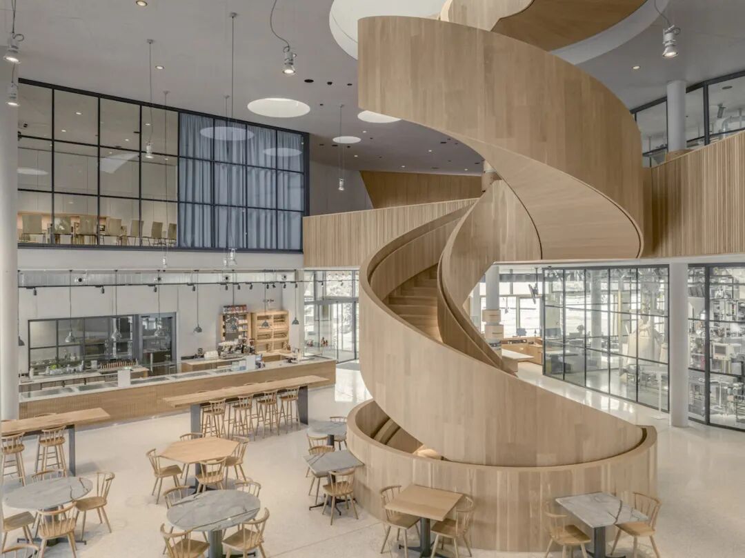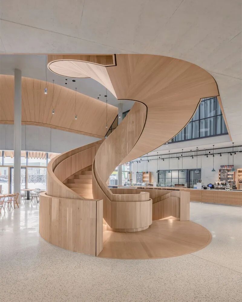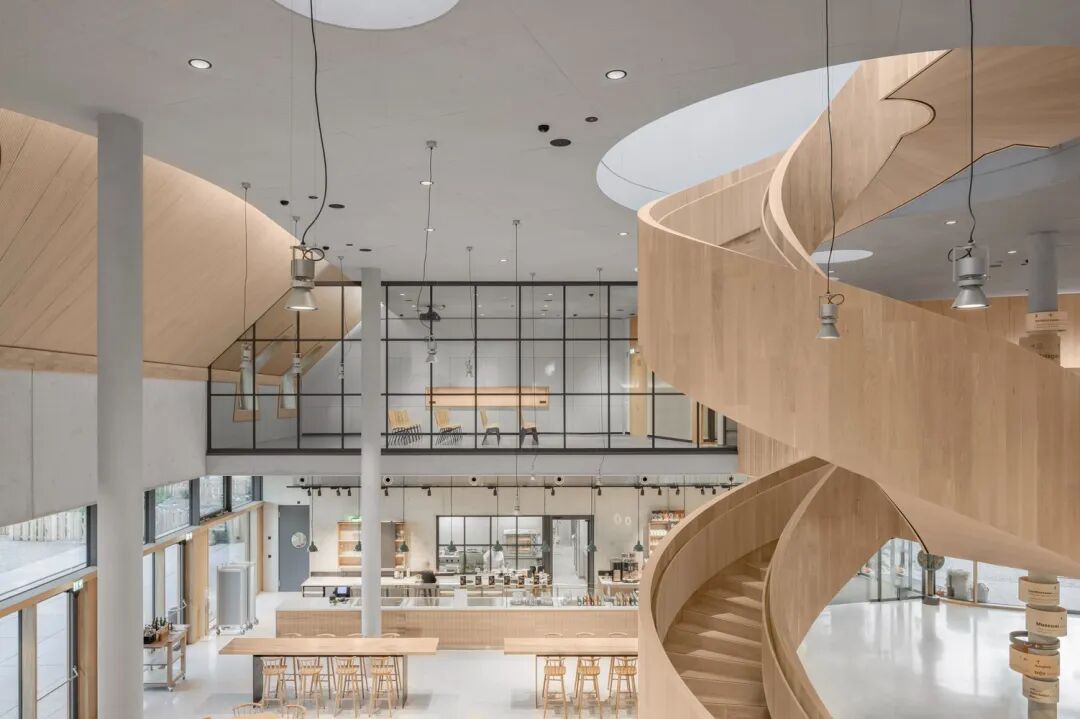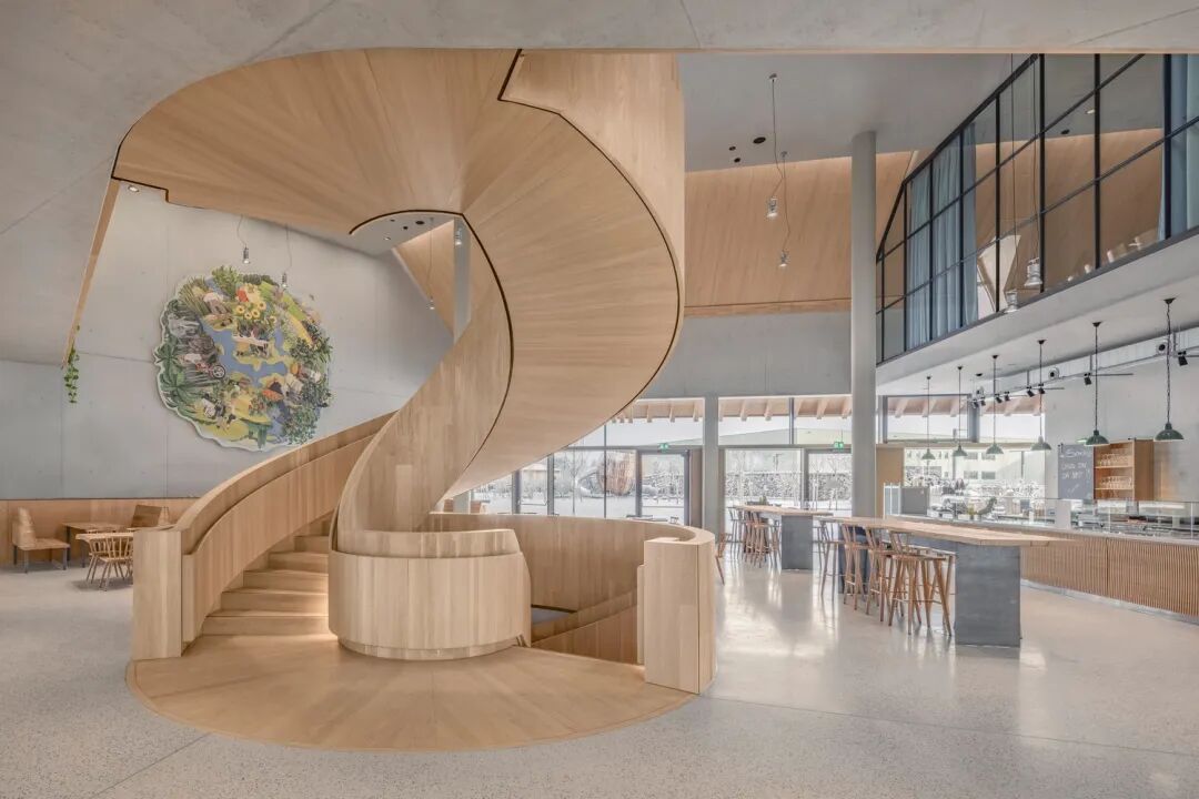 位于巴伐利亚的长发公主游客中心带有浮动屋顶和旋转楼梯, 其如同“步入式雕塑”般的建筑是由德国建筑公司 haascookzemmrich STUDIO2050 为有机食品生产商 Rapunzel Naturkost 设计。它标志着进入公司园区的欢迎门槛,欢迎来访者发现其愿景“我们因爱而生”的含义。