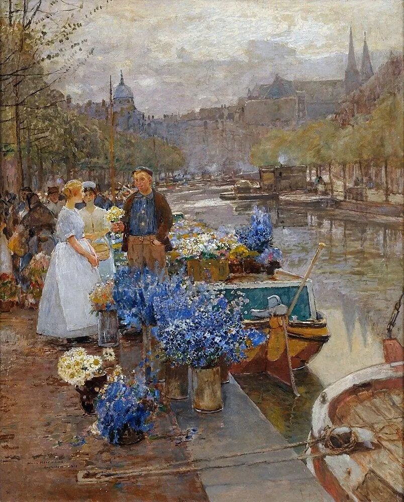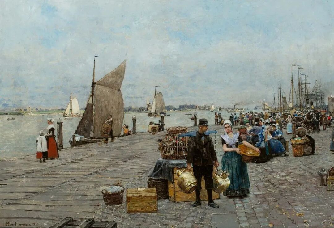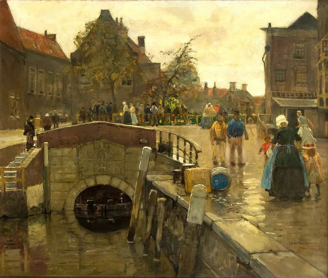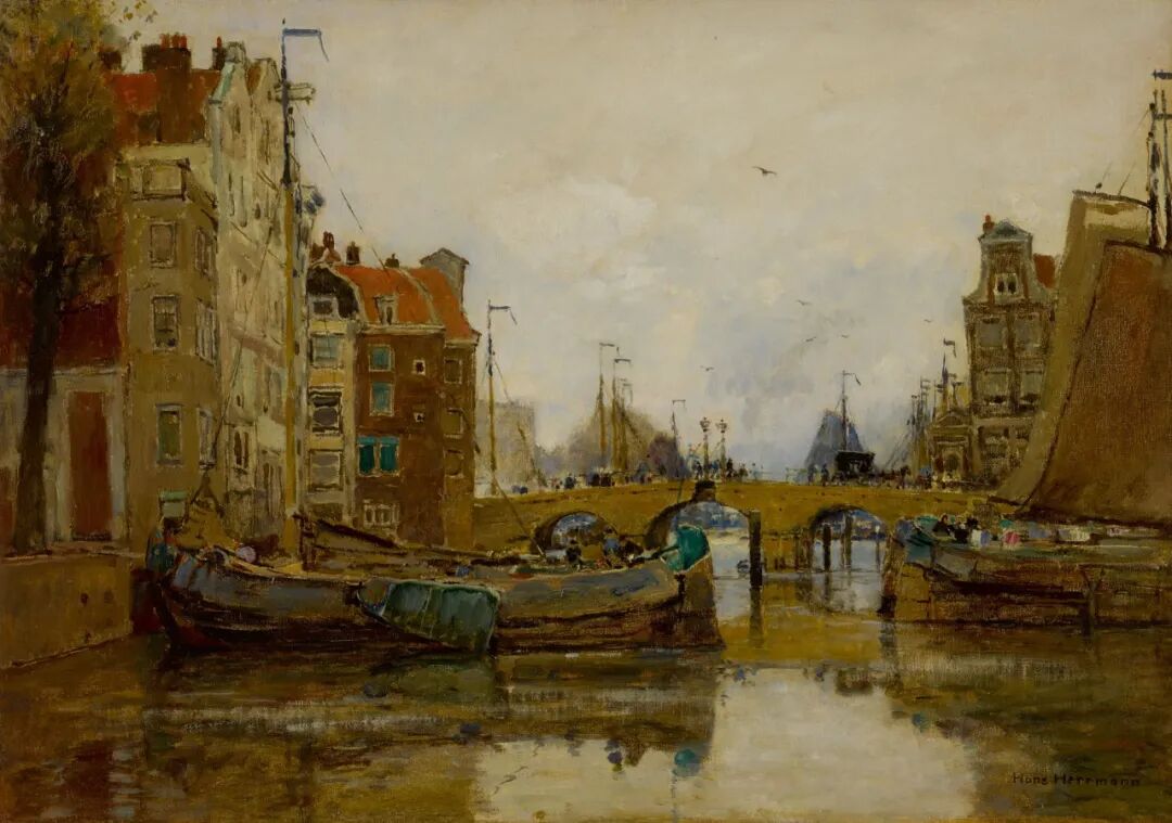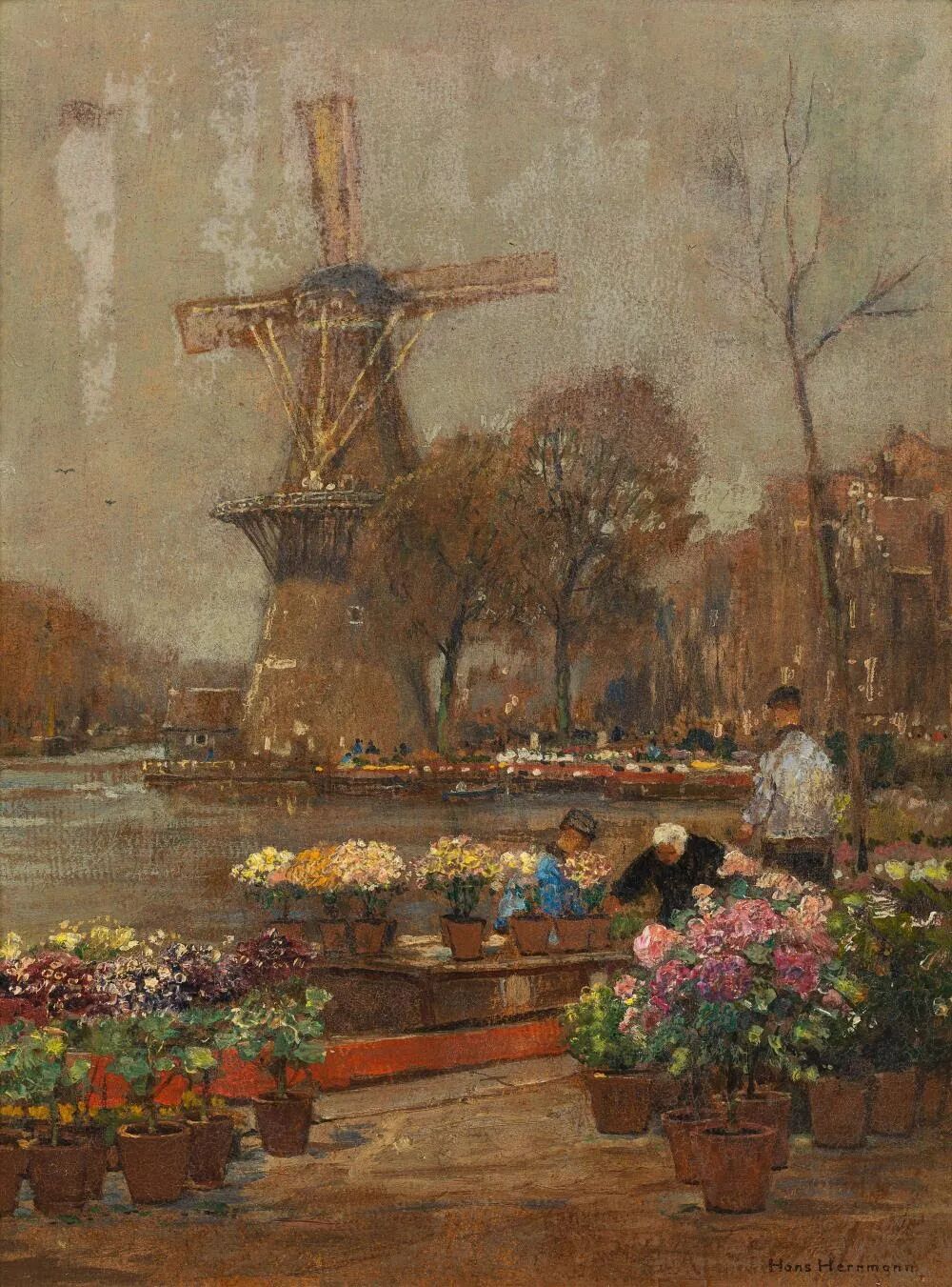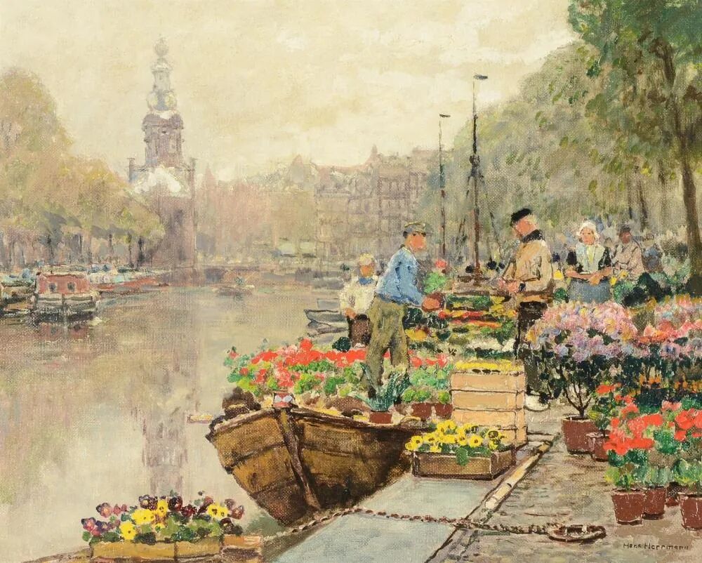 约翰-埃米尔-鲁道夫-赫尔曼,人称汉斯(Hans Herrmann | Genre painter,1858年3月8日-1942年7月21日),是一位德国风景画和风俗画画家,他擅长画荷兰的景物。