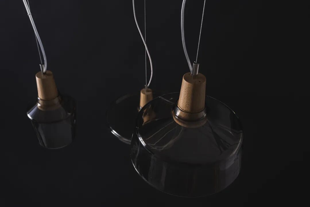 Industrial 系列由 3 盏灯组成,灵感来自旧传统工业灯的形状。灯罩是手工吹制的水晶透明玻璃,由一个木锥支撑。不同的风格可以很好地相互结合,适合私人住宅或公共空间。