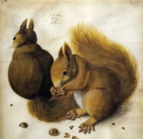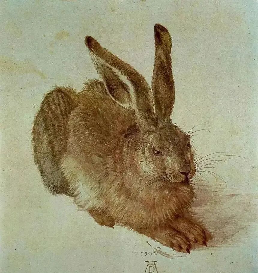 除此之外,他还有一个不可埋没的功绩,那就是1502年创作了世界上第一幅水彩画《野兔》,在这以前从来没有人画水彩画,最多就是在素描上作些水彩色的补充。