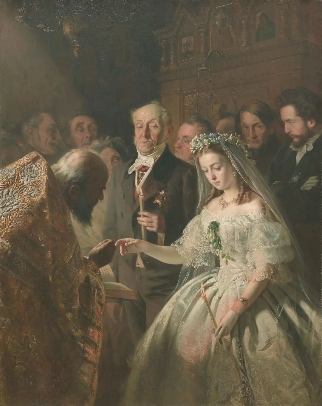 还记得历史上还有一副非常著名的《不相称的婚姻》吗?那是俄国画家的作品,我们下次再来说说那个画家。