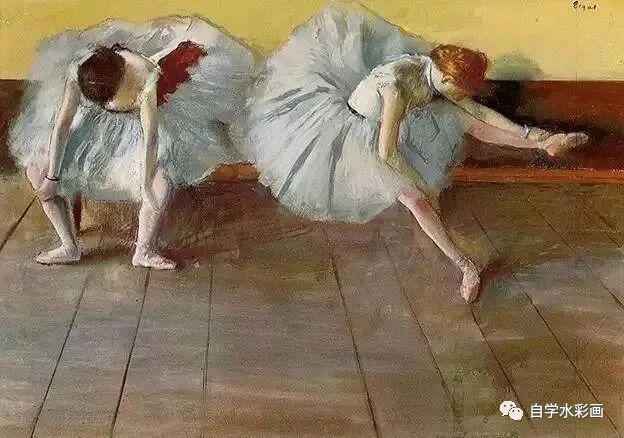 而且德加有“恐光症”,没办法像印象派画家们一样在室外绘画,而且德加对自然风景也不感兴趣,所以德加开始更多的在室内作画,画芭蕾舞女。