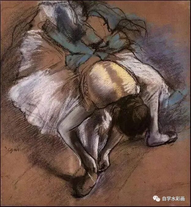 莫奈醉心于捕捉光的瞬间变幻,而德加则对捕捉肢体的瞬间动作有着异乎寻常的执念,对“衣衫凌乱””整理鞋带“”整理衣带“的不协调动作,像按暂停键一样把它们捕捉下来。