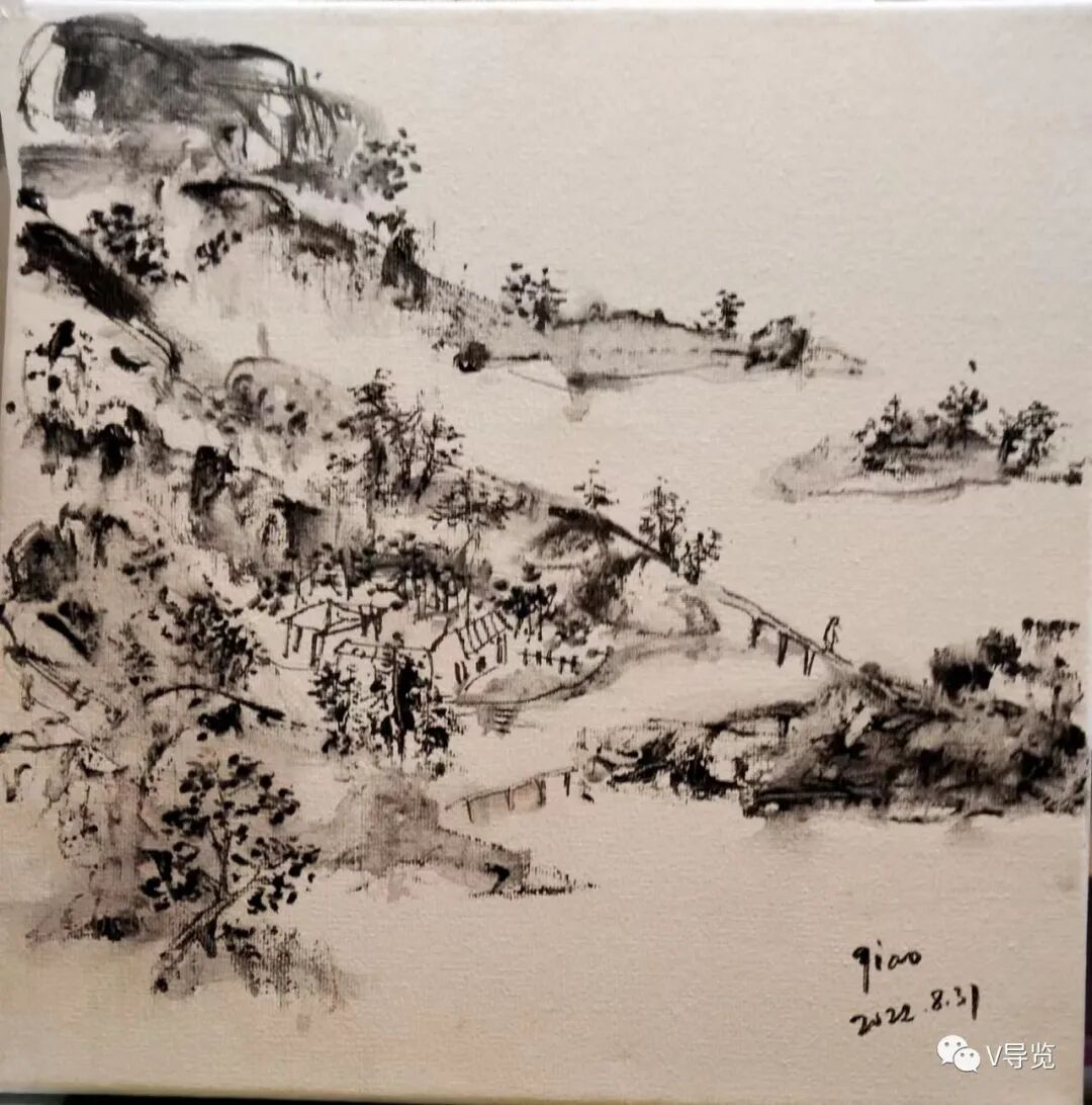 我们讲西方的风景画与中国的山水画,不属于一个类。我们画国画的山水,拿起笔就画,并不需要一个实景,也不需要照片。就完全海阔天空地画起来。一边画,一边根据笔墨的洇染,龙飞凤舞,这里加几棵松树,那里画一个茅屋,山间有一条小路,引向山的深处....