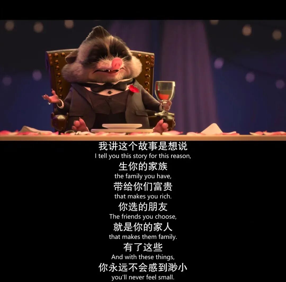教父味太浓了,喜欢《教父》的人甚至可以将它看成一次动画cos版,当中致敬不断,故事搞笑诙谐,但在那特有怀旧色调中,我们仍能感受到教父的凶狠又柔情的角色特质,是小鼩鼱们的圣经没错了,