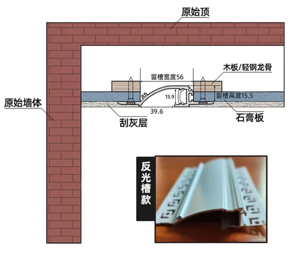建筑照明一体化工艺是未来发展的趋势,下面就以吊顶隐光结构为例,来简单地看一看常见的三种工艺的具体做法及特点对比。