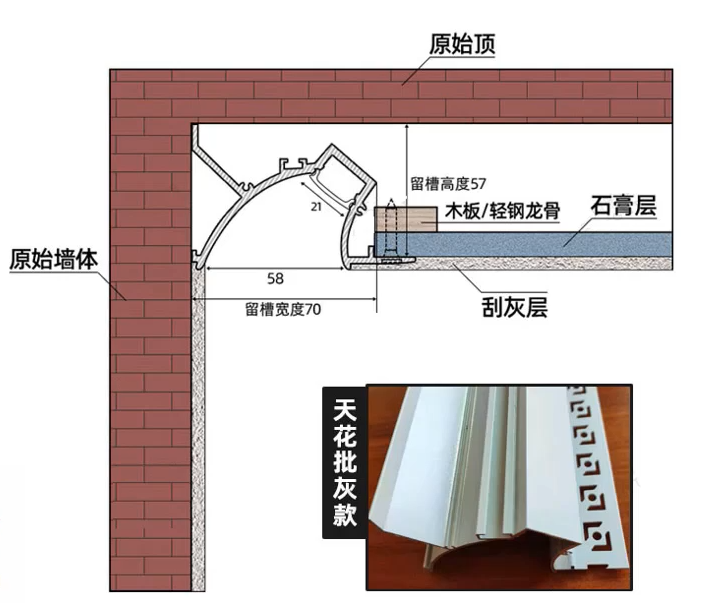 工艺特点:造价便宜,施工方便,但灯具体积较大,灯槽与墙体距离较大。