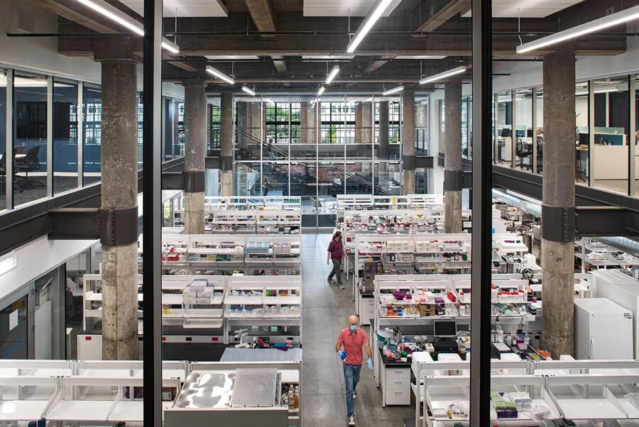 HOK的设计将这座老建筑改造成为能够为生物技术公司提供具有最先进技术的办公室、实验室和模块式空间等的设施。大型开放式空间设计为从初创企业到大型机构等处于各种发展阶段的生物技术公司提供负担的起的空间,并激发合作和创新。