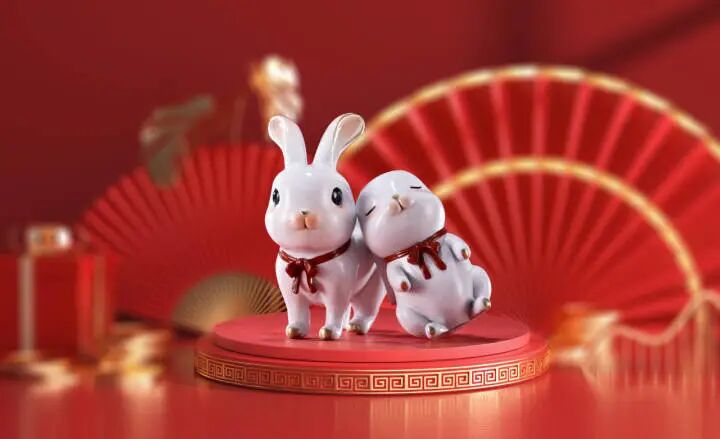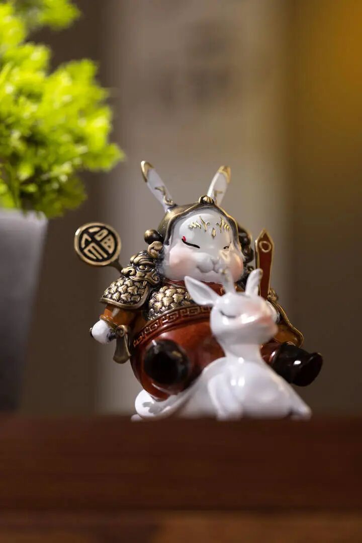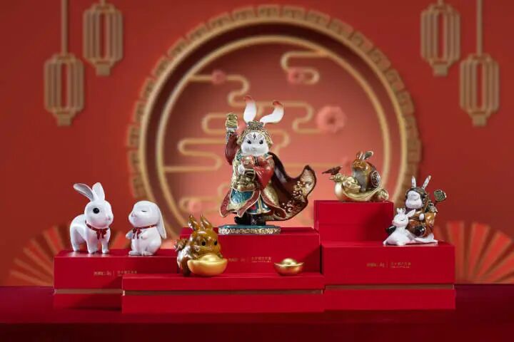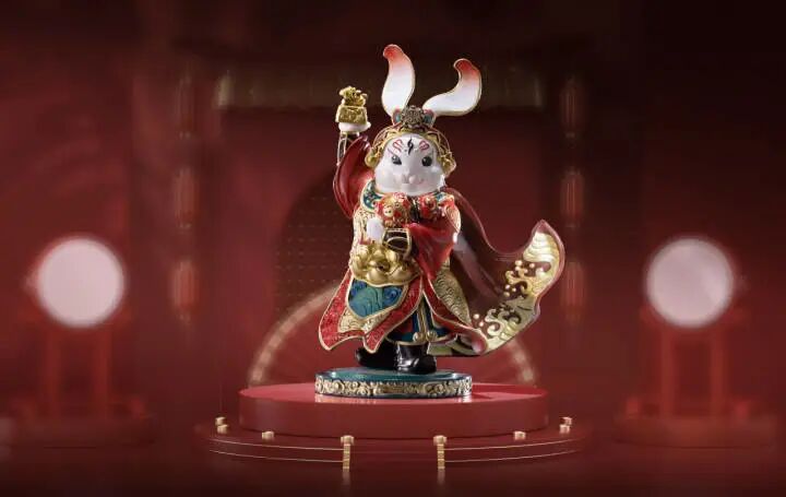 这几只兔子,它们分别是:面带微笑的《幸运兔——瑞兔呈祥》,看一眼就被萌化了;背带双翼的《兔飞飞——兔high》,“钱兔”无量,寓意吉祥;特别是身披战袍的“红兔子”《天兔赐福——兔俊俊》,形象威武又华丽,浓浓的年味扑面而来,为全国人民献上了癸卯兔年的美好祝愿。