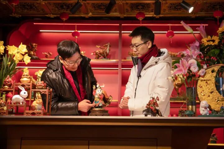 这几只兔年生肖贺岁吉祥物,出自“铜雕父子”中国工艺美术大师、国家级非遗铜雕技艺代表性传承人朱炳仁,和浙江省工艺美术大师、浙江省非遗铜雕技艺代表性传承人朱军岷之手。今年也是继2016年丙申猴年后,他们的贺岁生肖吉祥物第八次登上央视除夕特别节目。
