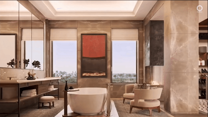 其中有一套为跨越五层的顶层豪华公馆。早在 2018年时,公馆已于酒店开业之前开始出售,这间顶层豪华公馆签约合同售价为 1.8 亿美元。