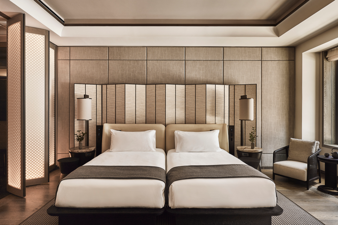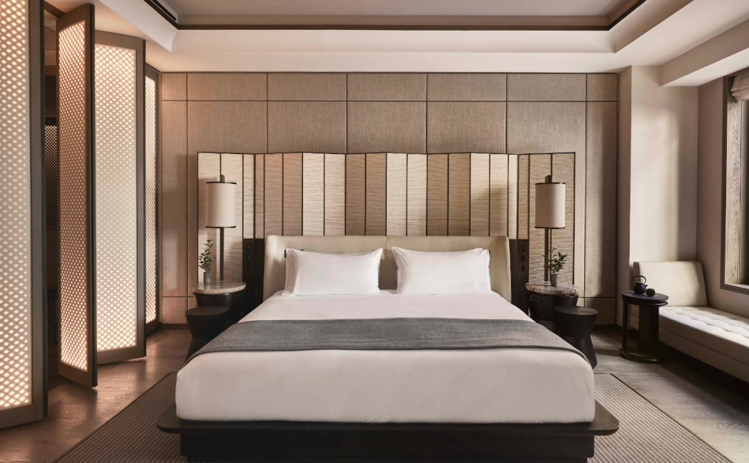 酒店内83间客房面积总计为750平方英尺,每间客房均设有功能齐全的壁炉,还将展出当代日本艺术家足立凉子的大型壁画,其灵感来自长谷川等伯的15世纪杰作《松林图》,这些对纽约的都市文化而言却是极为罕见的存在。Jean-Michel Gathy还利用细腻的色调和创意的灯光营造出舒缓和具有隐私性的空间氛围,同时为喜欢更现代氛围的客人提供独特的旋转门,将其打开时,现代装置和浴室家具等映入眼帘。