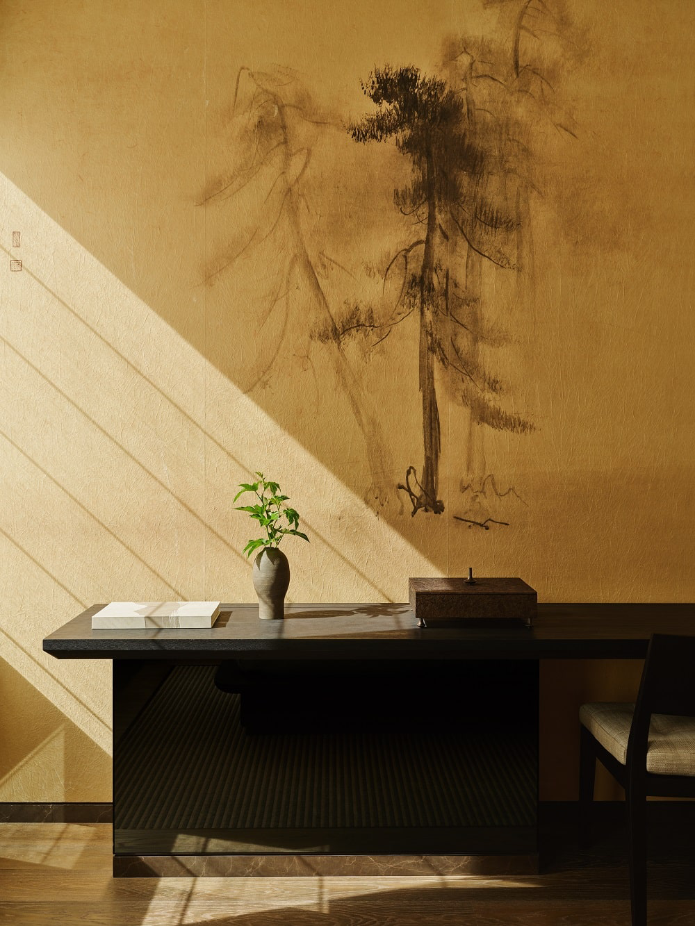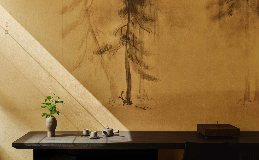 所有客房还在墙头呈现日本艺术家足立良子,致敬16世纪艺术家长谷川等伯的代表力作《松林図屏風》所作的壁画。