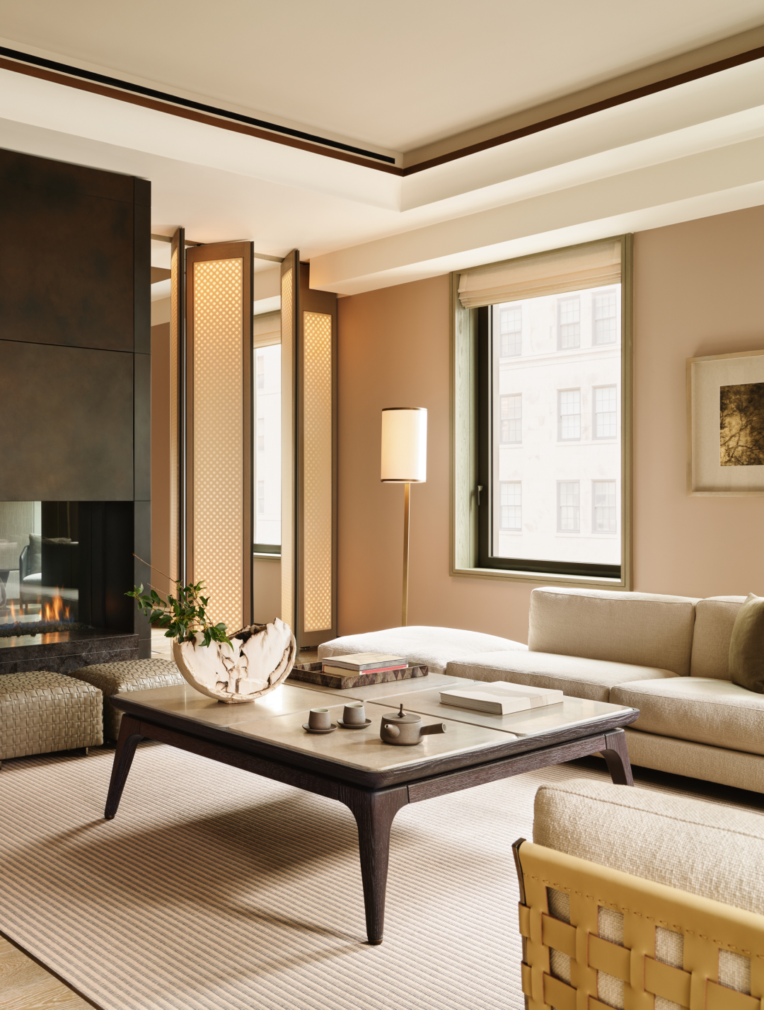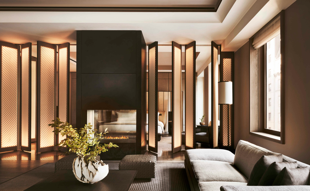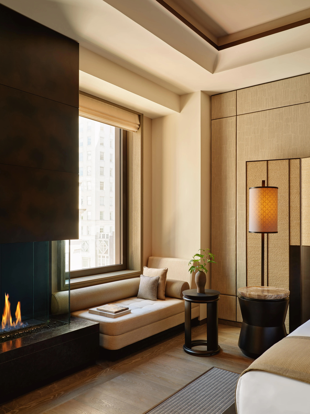 酒店的83间套房空间之开阔冠绝全城,以安缦东南亚地区酒店的舒朗建筑风格为灵感设计,让人倍感放松。有意思的是这里每间套房均设有壁炉,这在纽约酒店中可不多见。