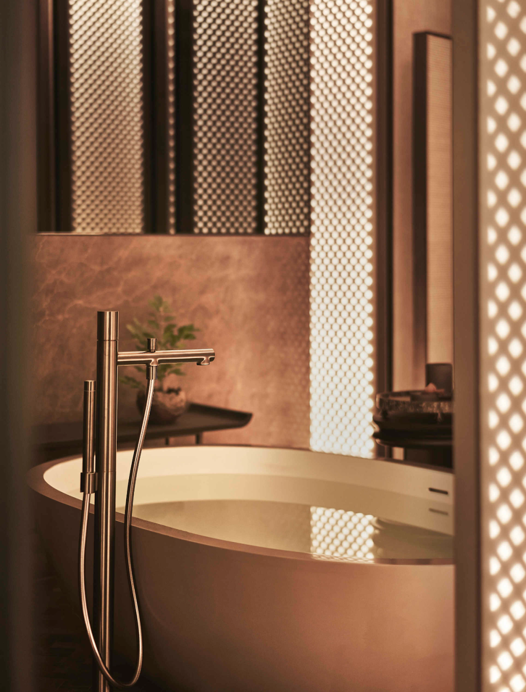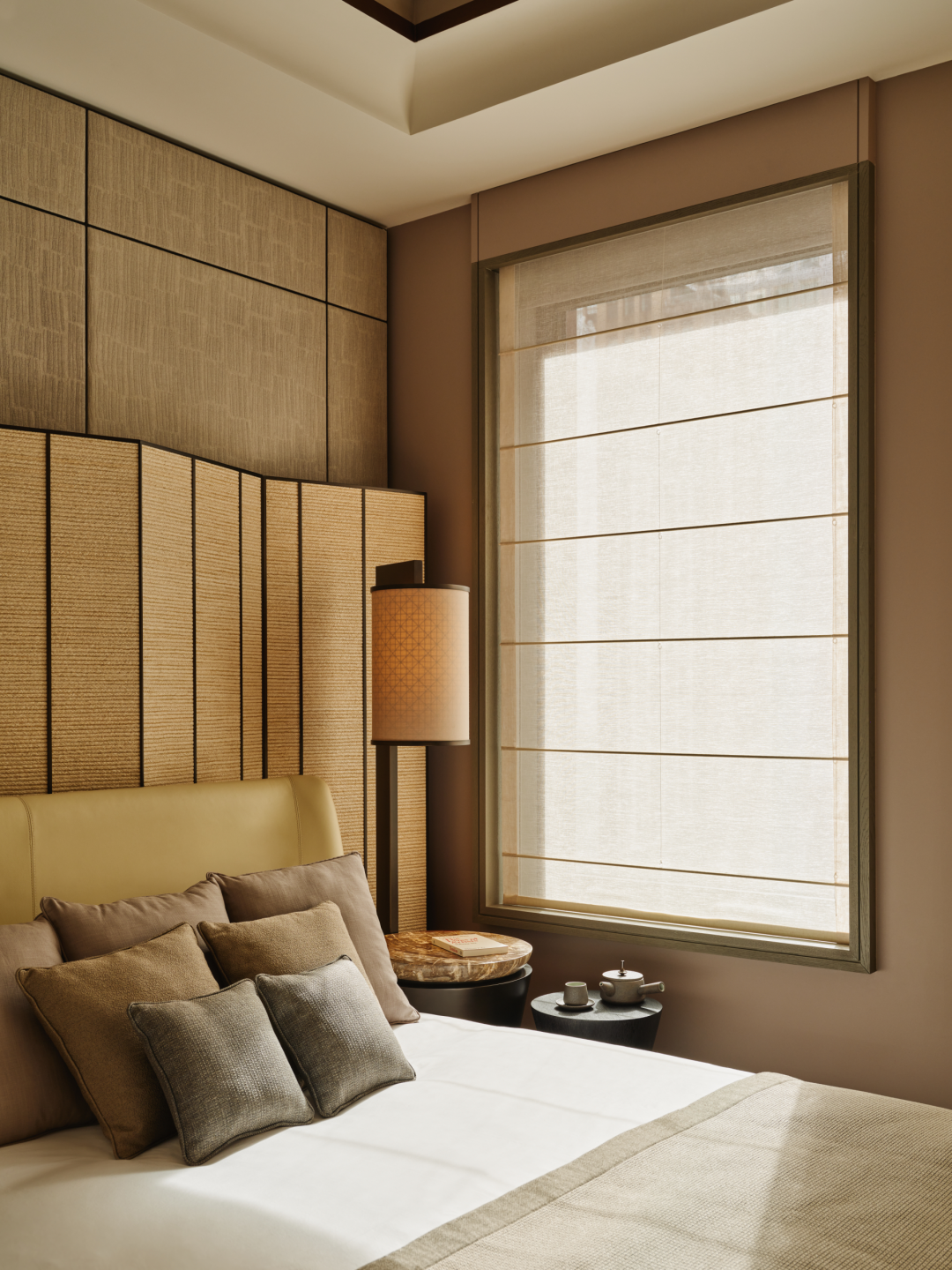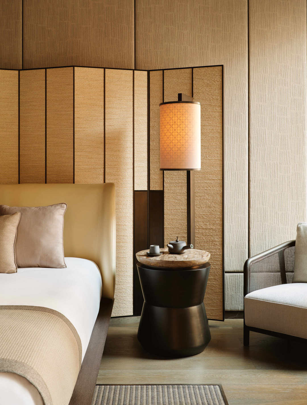 屏风门是Jean-Michel Gathy空间术语中的重要元素,其能让空间在通透和私密中切换自如,也把分隔空间的自主权交由住客自己。让空间随功能需求和心境变幻灵活调整。这一元素也运用在安缦纽约起步客房的浴室和卧室边界处,让浴室和居室空间若即若离,烘托出空间层次之美。