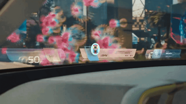 而宝马则显然更“敢玩”,在代表品牌未来交互概念的Dee概念车上直接取消了车内屏幕——或者说搞出了一块巨大的车内屏幕:风挡有多大,屏幕就有多大。有了最新的先进平视显示系统加持,宝马甚至可以让你在“元宇宙”里开车,车外平平无奇的场景也可以被渲染成五光十色的奇妙世界。