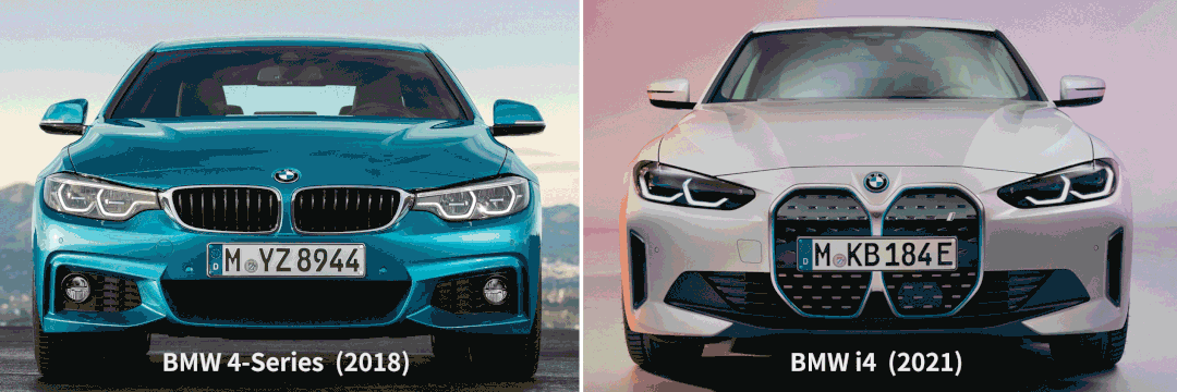 在德系三强中,宝马更注重运动感与攻击性,这是毫无疑问的。即便是电动化时代的i4、iX等车型,也同样体现了这个特色。因此前脸的结构必须符合动感雕塑的原则,薄则拉宽,厚则支撑瓦解,不能显出横向多个分层的“臃肿”感。