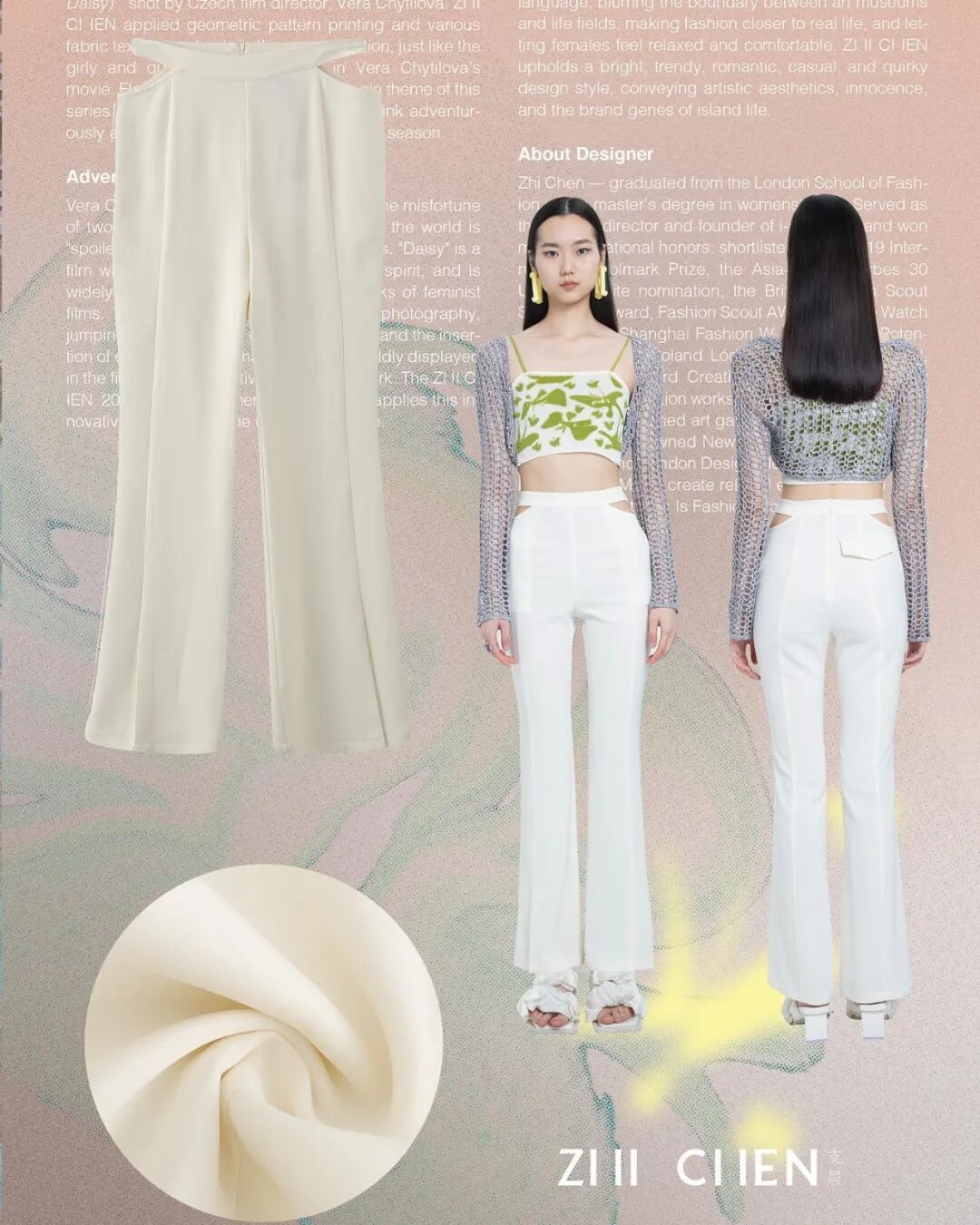 Z: 我叫支晨,我们品牌是 2017 年在伦敦成立,我原来是个工程师,ZI II CI IEN 有一句 Slogan 叫做「把艺术变成生活的必需品」
