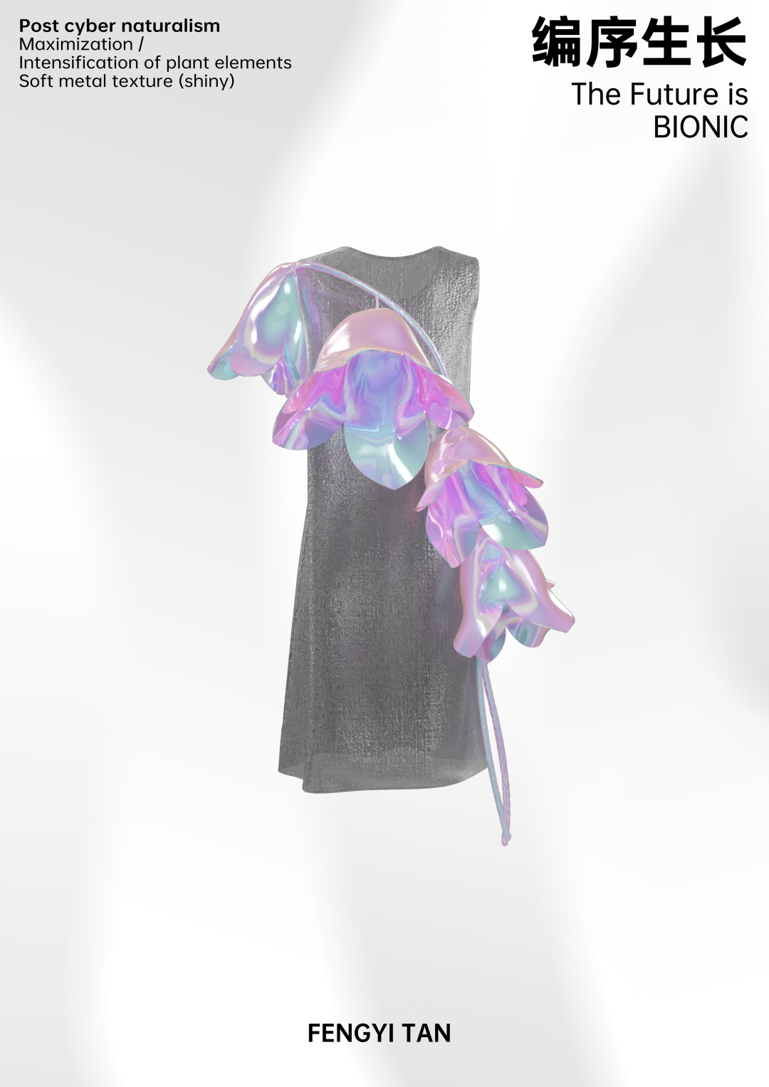 F:这次合作是根据我们 22 春夏的系列来创作的 NFT 作品,这个系列是以「时间雕塑」为灵感,让不同形态的花朵随着服装结构在身体上蔓延生长,不同时间不同场景下,肢体的运动将带给服装新的生命力。希望穿着 FENGYI TAN 的女性能在内观与向外探索的过程中找到属于自己的时间状态。