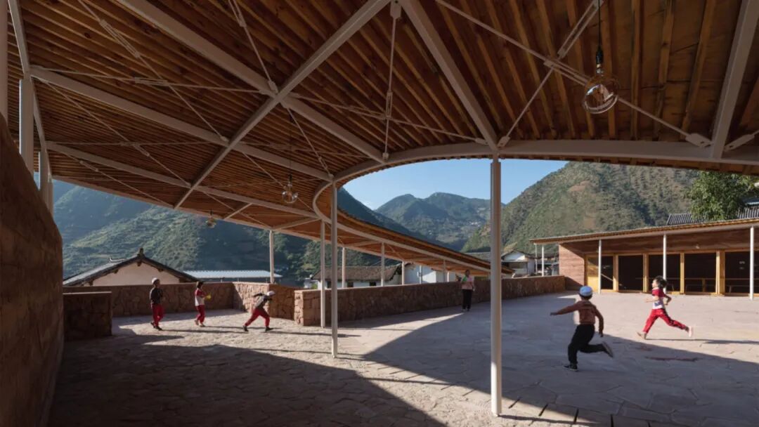 钢架弯曲屋顶与这些传统建造的夯土结构形成鲜明对比,采用参数化设计方法在庭院周围创造出起伏的弧线,并尽量减少非标准构件的使用,便于施工。