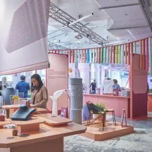 设计品牌 Moooi 推出的展览涉及到多个感官,展示了该品牌与其他设计品牌 IDEO、LG OLED 以及艺术家 Ada Soko 合作的作品。