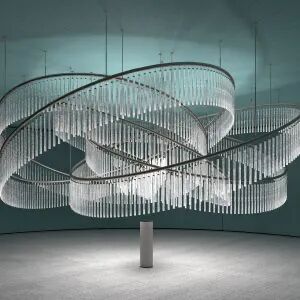 玻璃设计品牌 OmniDecor 展示的艺术展位,对该品牌生产所用的玻璃材料以及由它们制成的艺术作品之间的联系进行了探讨。