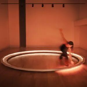 Sincronia 是意大利设计工作室 Habits 设计的圆形展位,探索声音、光与运动之间的关系。