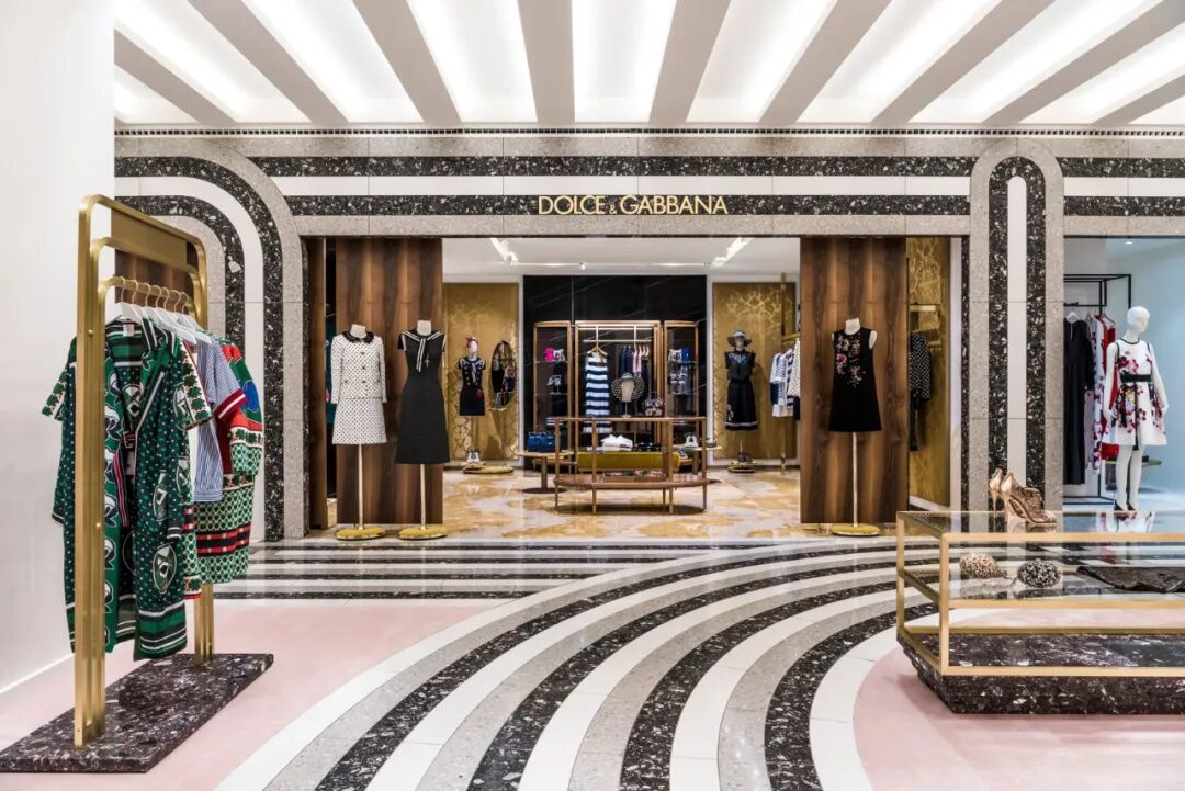 法国建筑设计师 India Mahdavi 为 KaDeWe 百货商店重新设计了女装区域。设计师选用 Santa Margherita 石材在地板上铺陈出极富冲击力的黑白灰包豪斯几何线条。