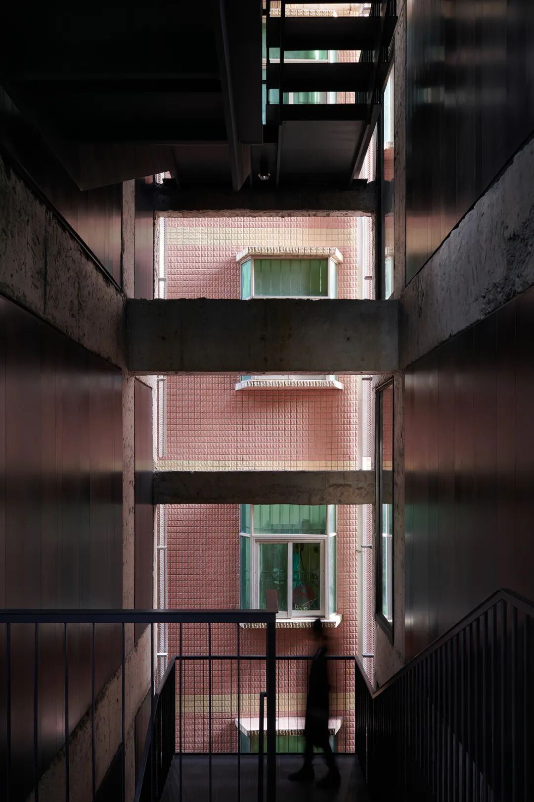 为了延续城中村的市井烟火,如恩保留了建筑的原始‘骨架’和‘皮肤’,将原有的建筑体量进行切割,形成都市“切口”,将城中村的公共空间引入建筑内部。 “新与旧,历史与现在的对立正是这个项目空间体验的重要组成部分,”如恩的创始合伙人郭锡恩对 Dezeen 表示。