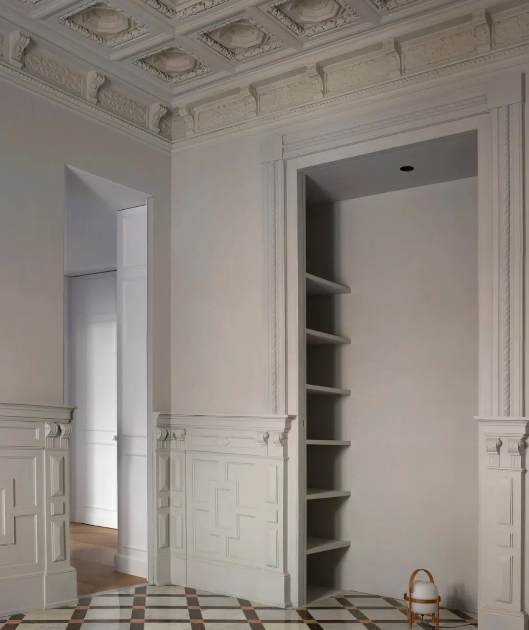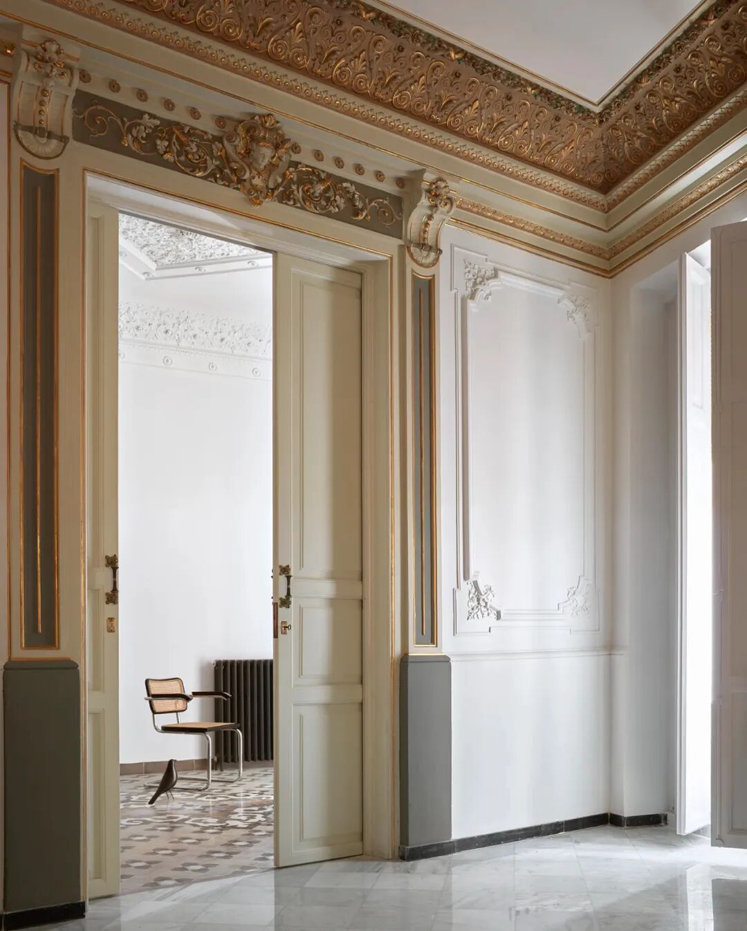 This is a unique space in the city of Valencia. It has a history of more than 100 years, including marble floors, Nora sidewalks, wood paneling and gypsum ceilings. The architects came across a partially remodeled house. The three spaces in the best state of protection, as well as the space recovered by the studio through action, are the dining room with beautiful Nora floor, the living room with outstanding shape, and the learning area where Antonio Cortina's paintings welcome us when entering. The main requirement of customers, which they shared with them from the very beginning, is to retain all these original elements and make minimal changes to the space to ensure that the house adapts to the new era, has new facilities, open space and all the comforts of the current house.