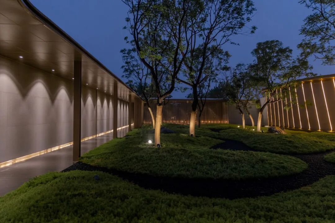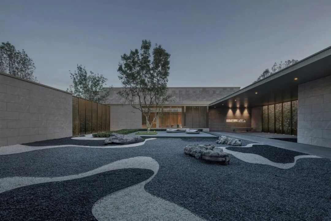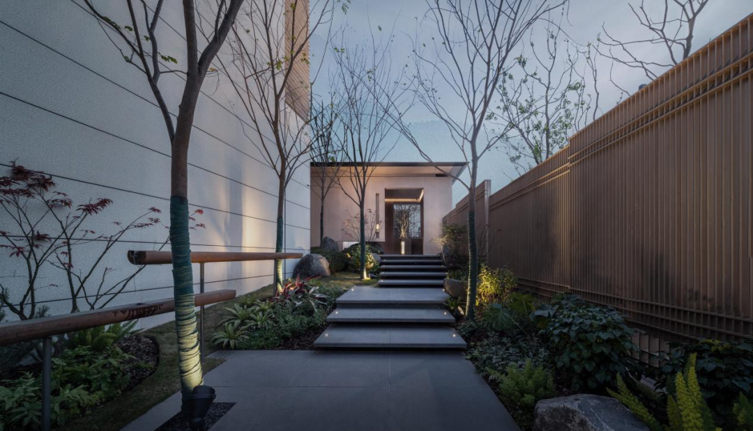 构建园筑相依的空间格局,多进院落式格局,合理的组织室外空间,利用地形的抬升进行多维度的链接,使各个庭院互为渗透,流畅转换,构建独特的沉浸式空间体验,打造一个闹中取静、移步异景、室内外空间互相融合共生的无界空间。