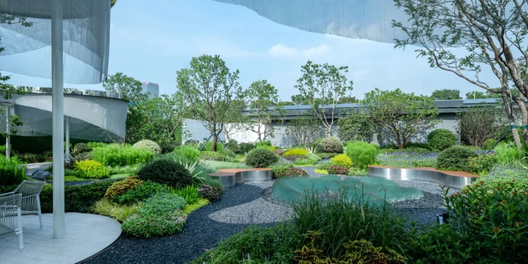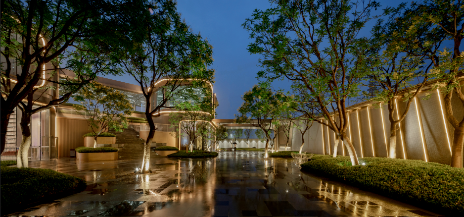 项目位于西安高新区核心区域,取自然中的树、石、光影、流、植物等元素融于设计之中,基于地形加入空间的开合变化,将其转化为归、林、谷、潭四大场景,打造清净避世,自然野趣的“现世桃源”。