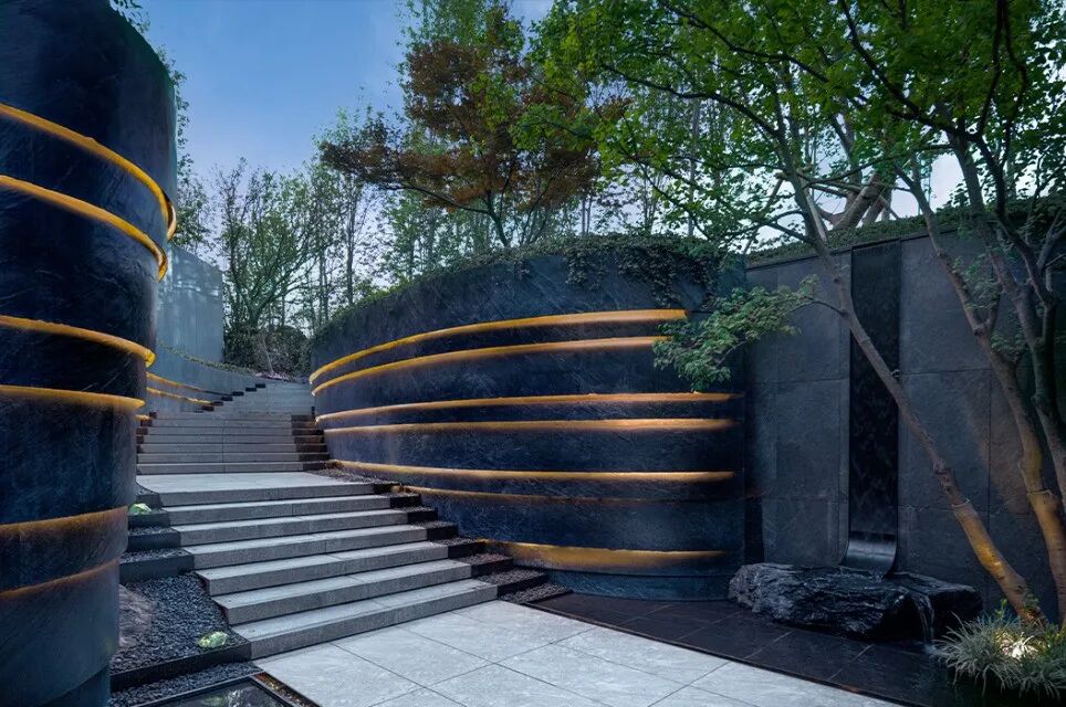 项目位于西安高新区核心区域,取自然中的树、石、光影、流、植物等元素融于设计之中,基于地形加入空间的开合变化,将其转化为归、林、谷、潭四大场景,打造清净避世,自然野趣的“现世桃源”。