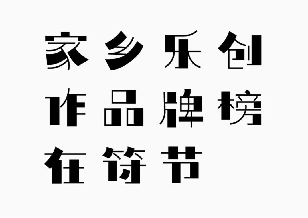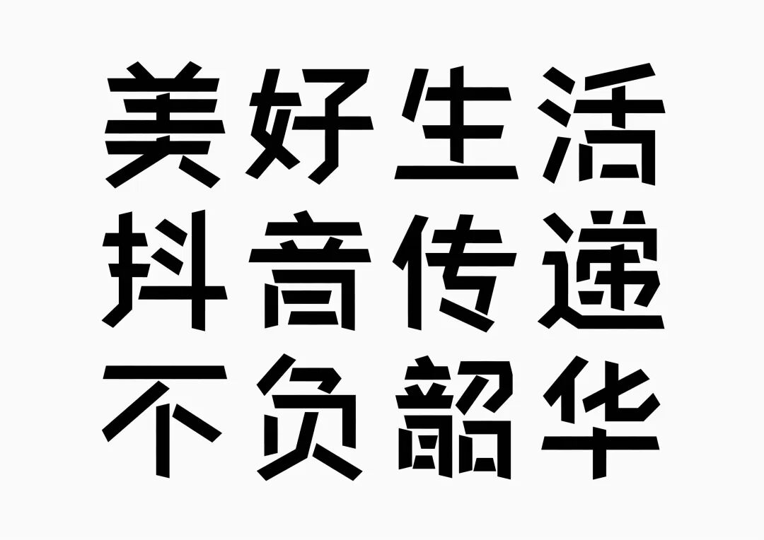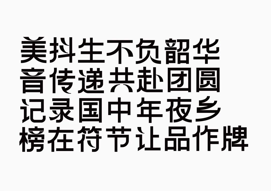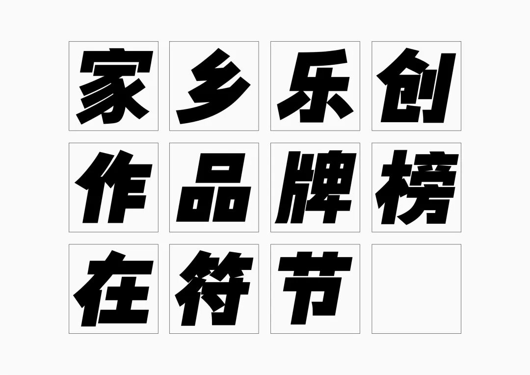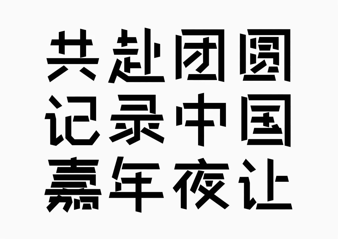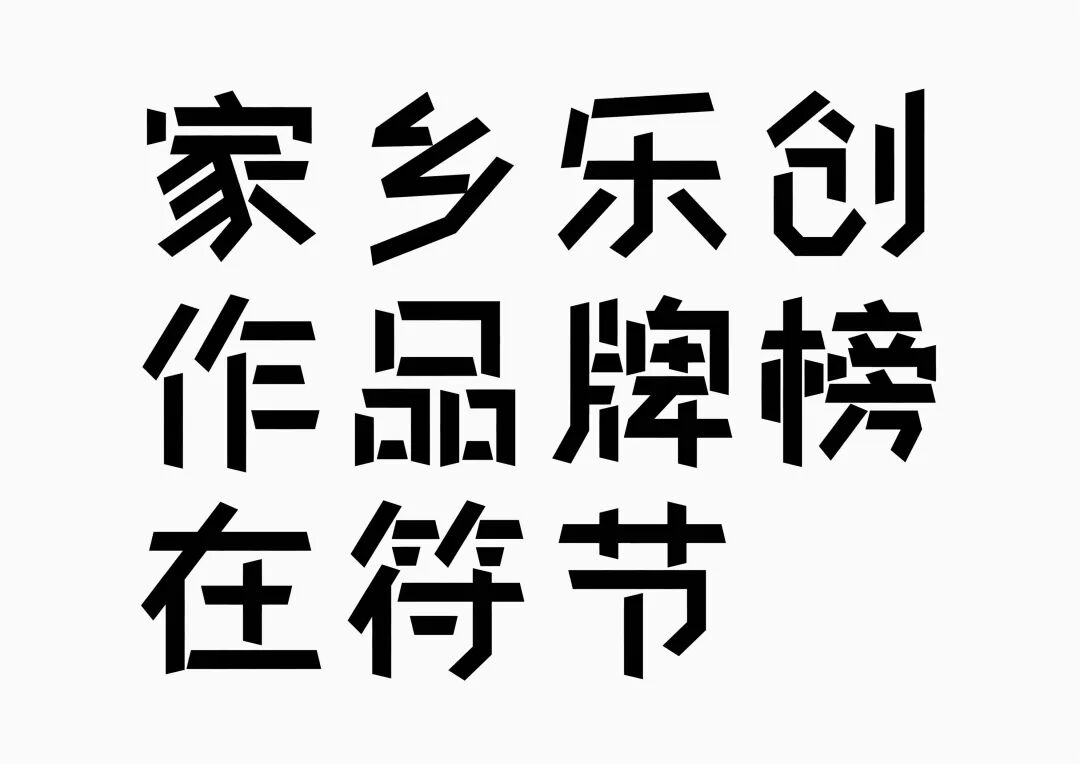 It is a modern experimental font facing the Internet communication environment. Each character is kept the same size in a strictly uniform grid. The font is tall and up-centered. The whole font strokes are composed of equal lines, and rounded corners and right angles coexist. In order to highlight the information content in the era where everything is displayed via screens, the font weight is large. On the whole, the font breaks the stroke form and structure of traditional Chinese characters, has a strong sense of geometry, and transmits the uniqueness of Chinese characters in a postmodern style.