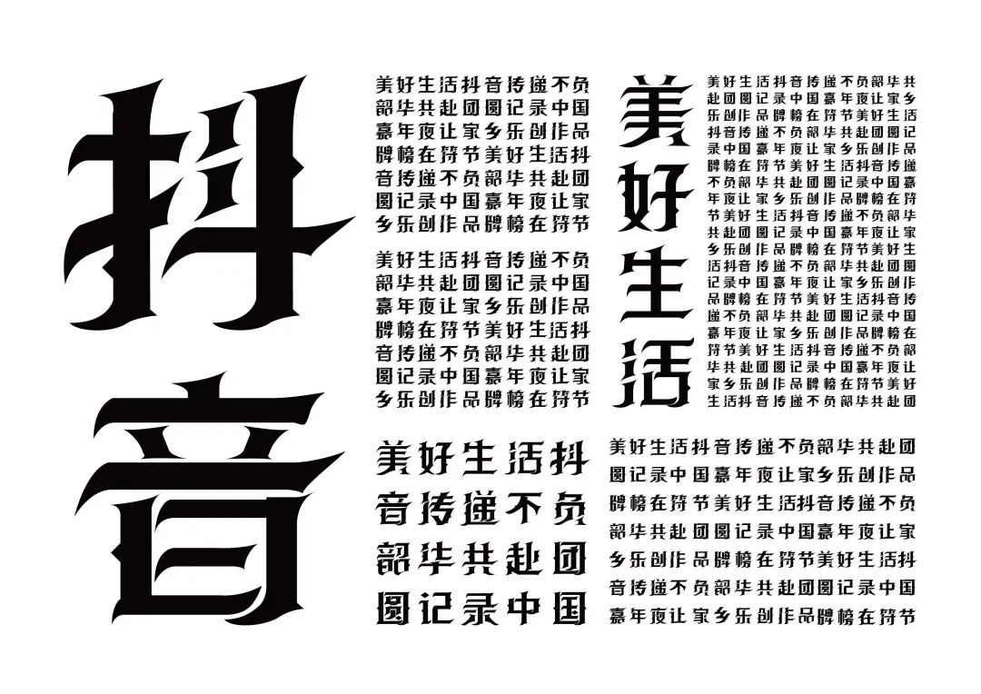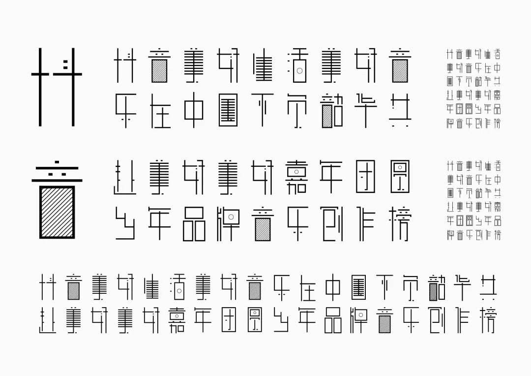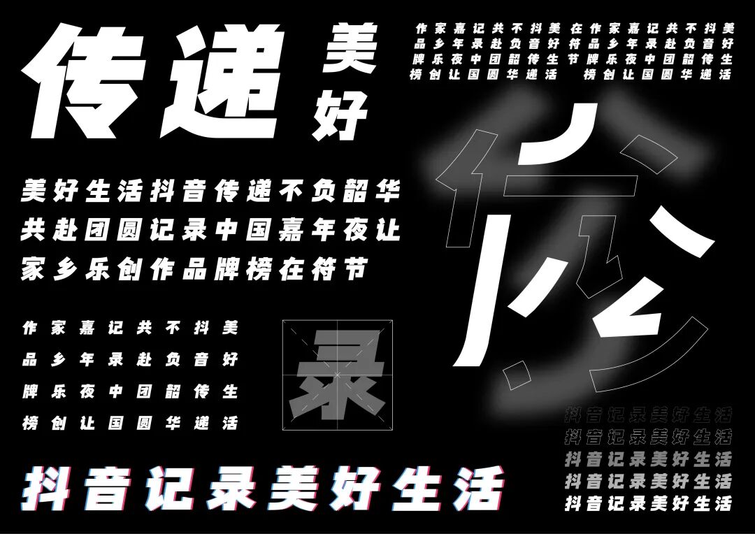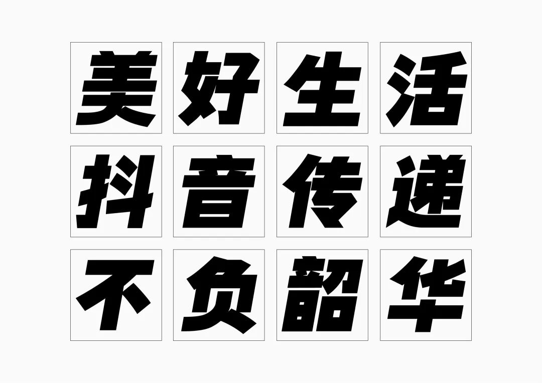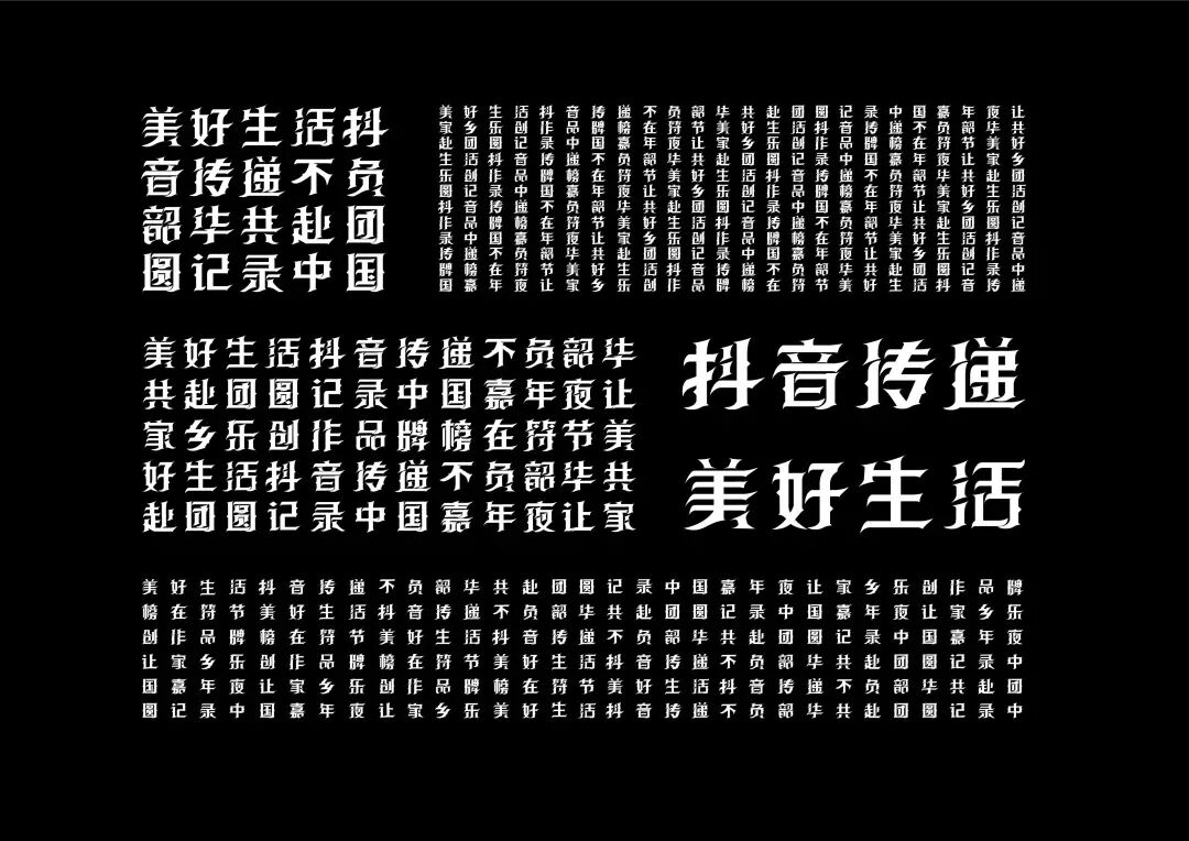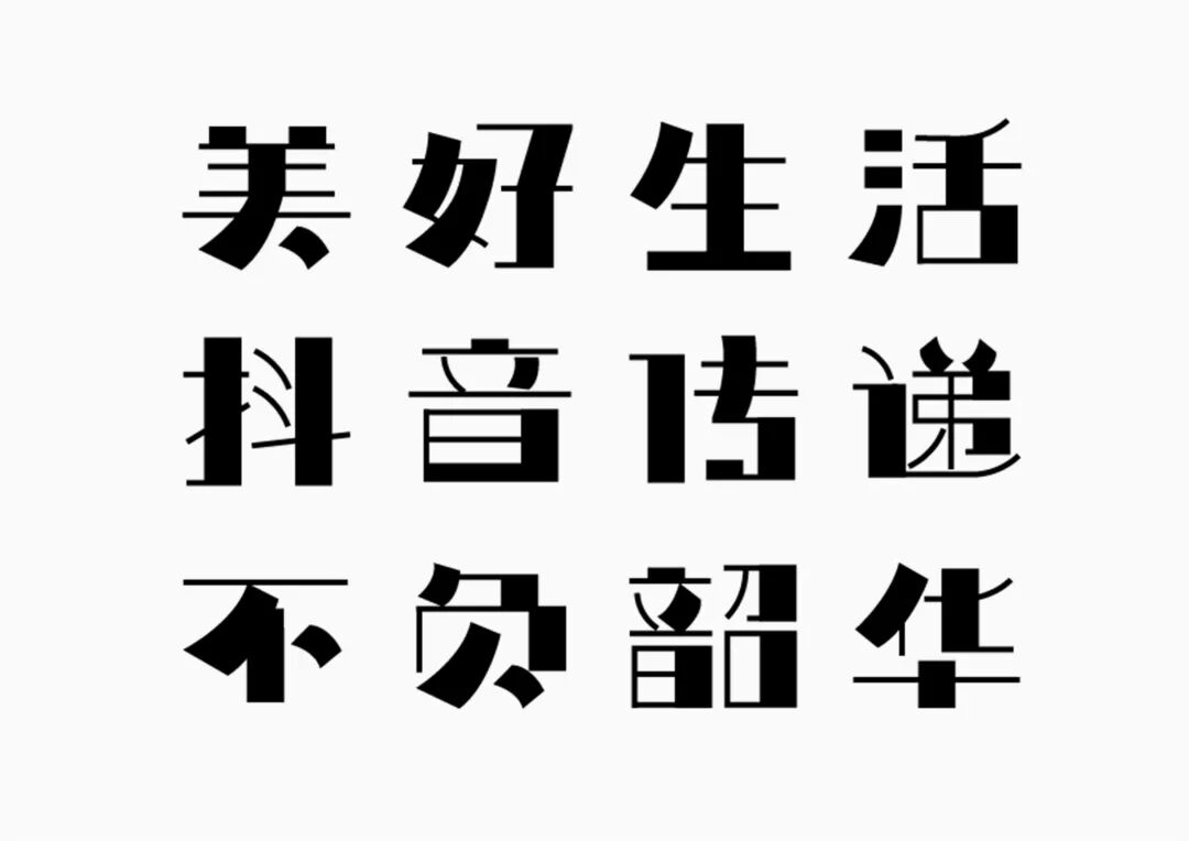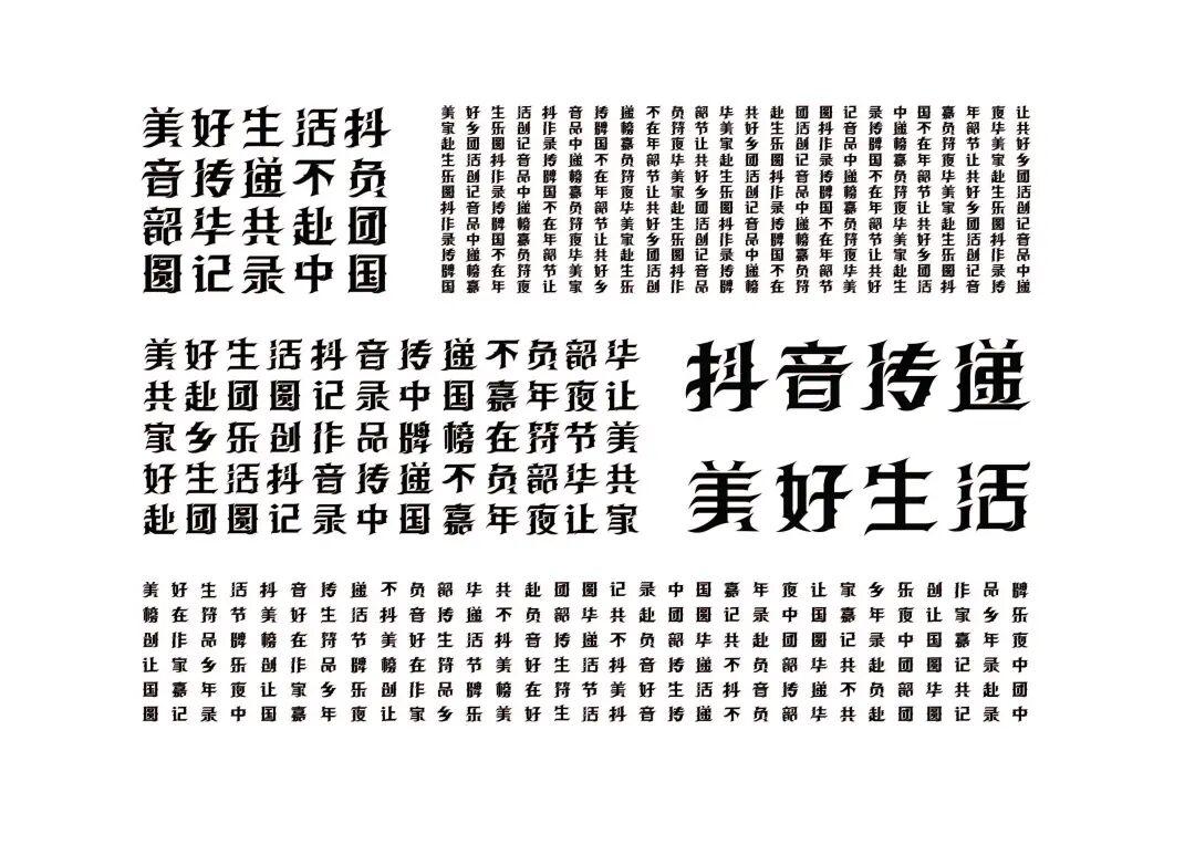 It is a modern experimental font facing the Internet communication environment. Each character is kept the same size in a strictly uniform grid. The font is tall and up-centered. The whole font strokes are composed of equal lines, and rounded corners and right angles coexist. In order to highlight the information content in the era where everything is displayed via screens, the font weight is large. On the whole, the font breaks the stroke form and structure of traditional Chinese characters, has a strong sense of geometry, and transmits the uniqueness of Chinese characters in a postmodern style.