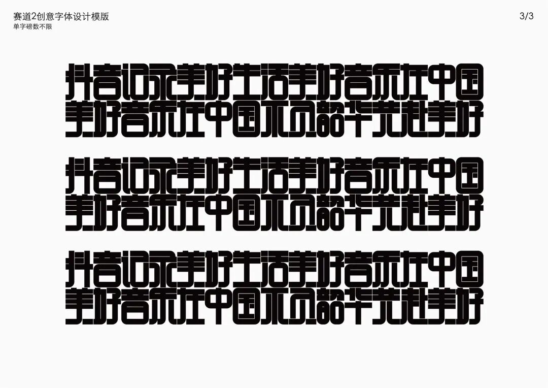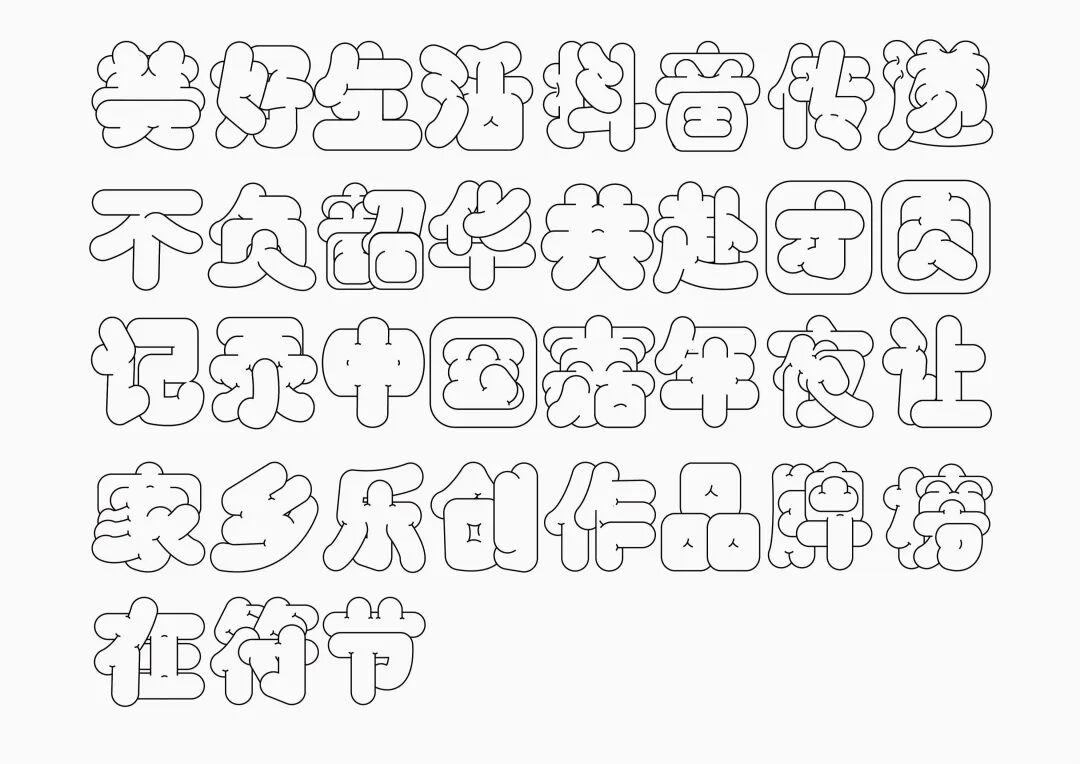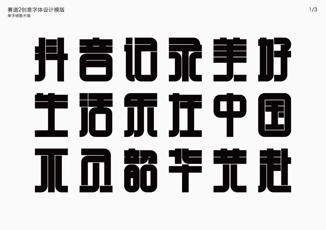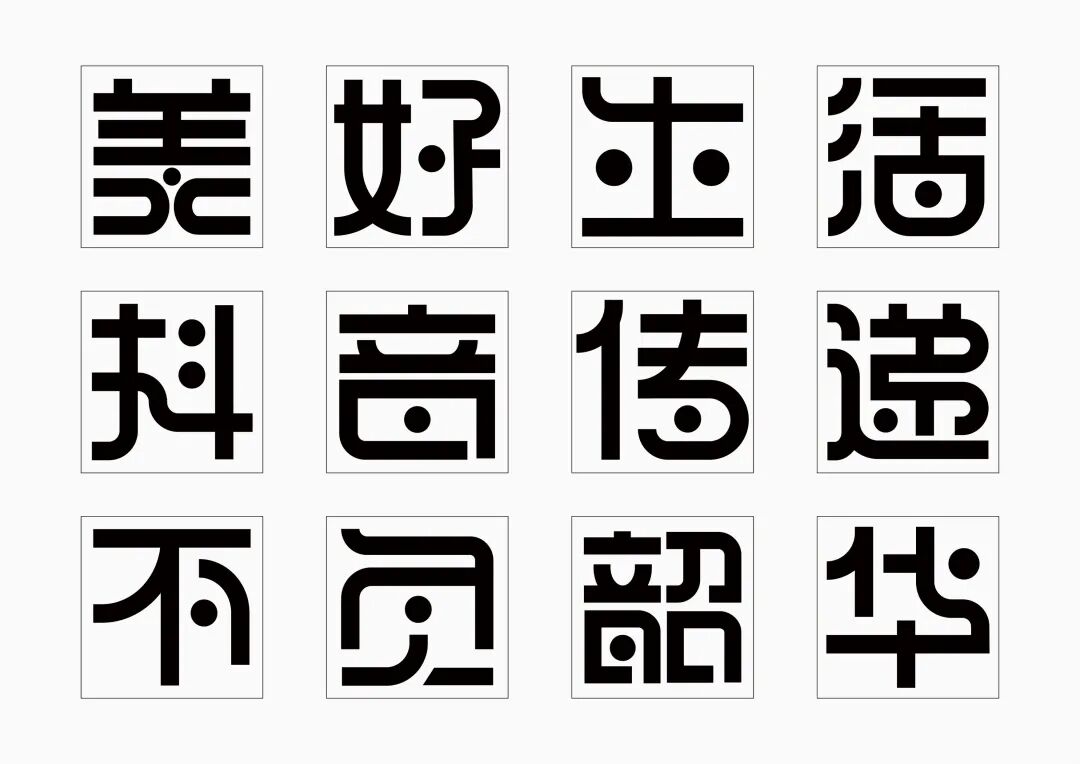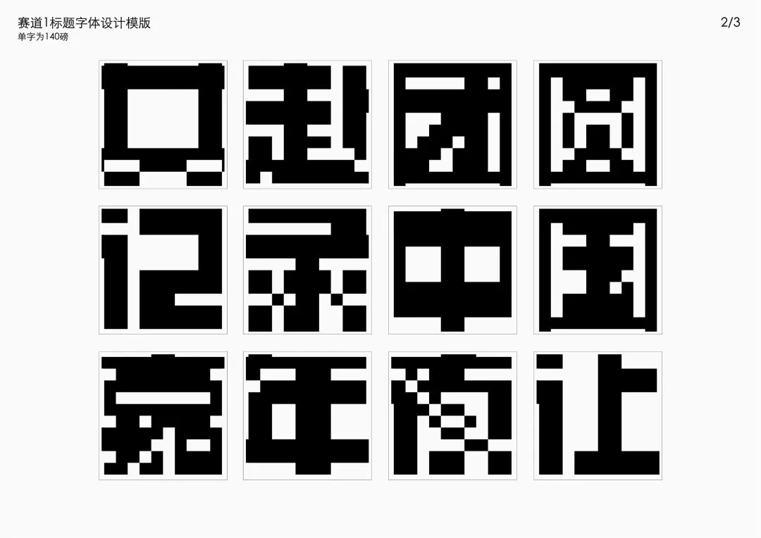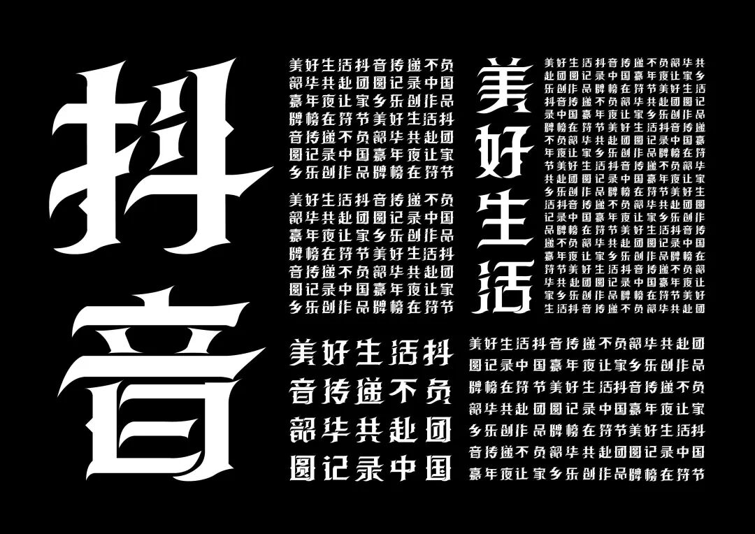 It is a modern experimental font facing the Internet communication environment. Each character is kept the same size in a strictly uniform grid. The font is tall and up-centered. The whole font strokes are composed of equal lines, and rounded corners and right angles coexist. In order to highlight the information content in the era where everything is displayed via screens, the font weight is large. On the whole, the font breaks the stroke form and structure of traditional Chinese characters, has a strong sense of geometry, and transmits the uniqueness of Chinese characters in a postmodern style.