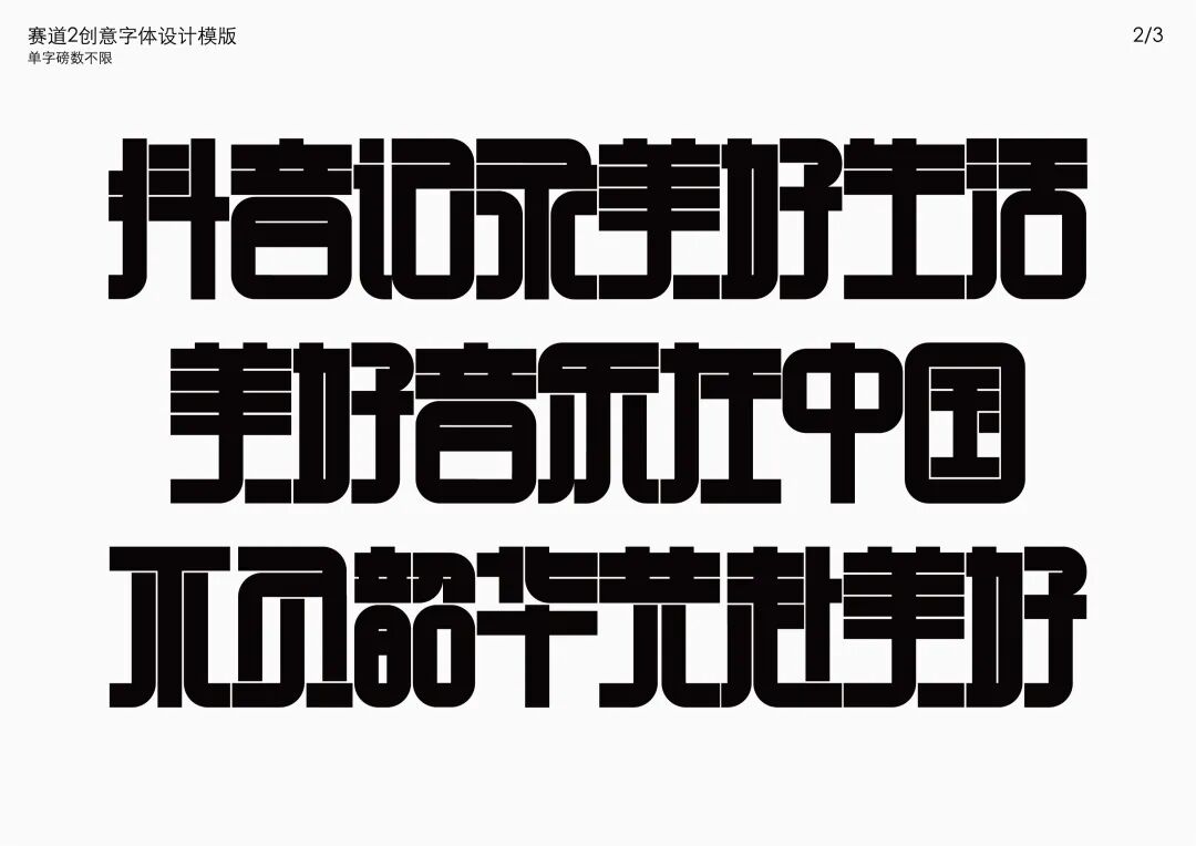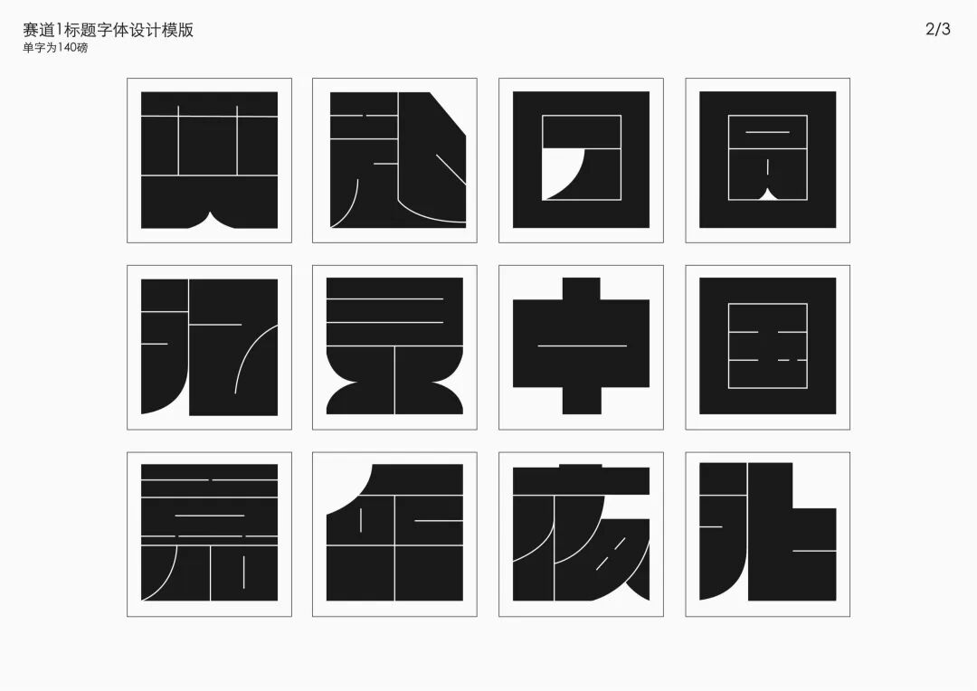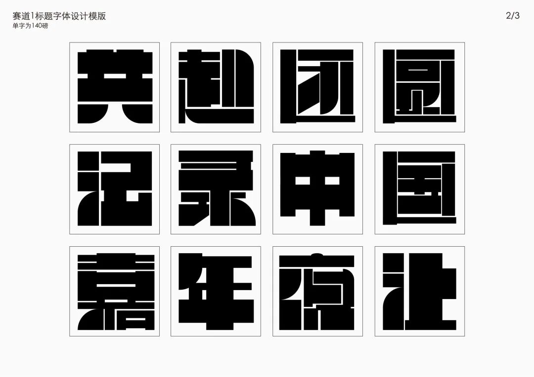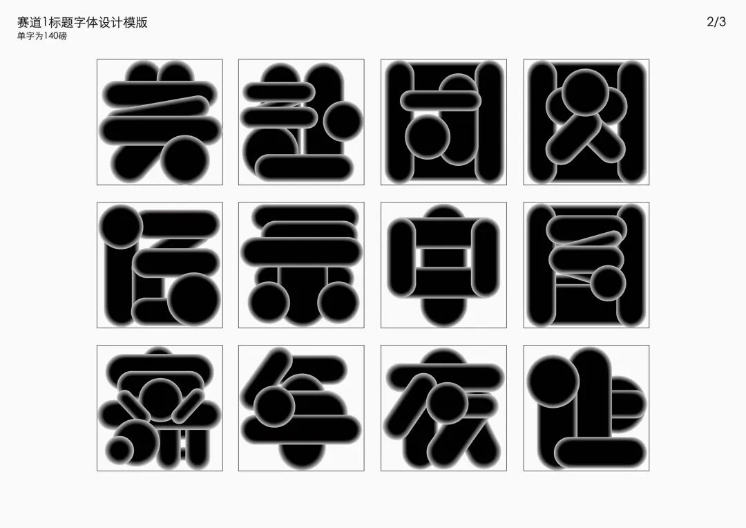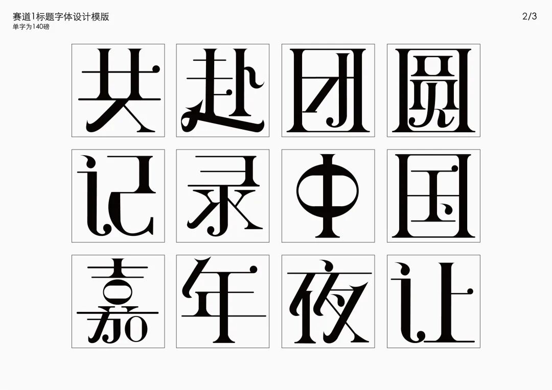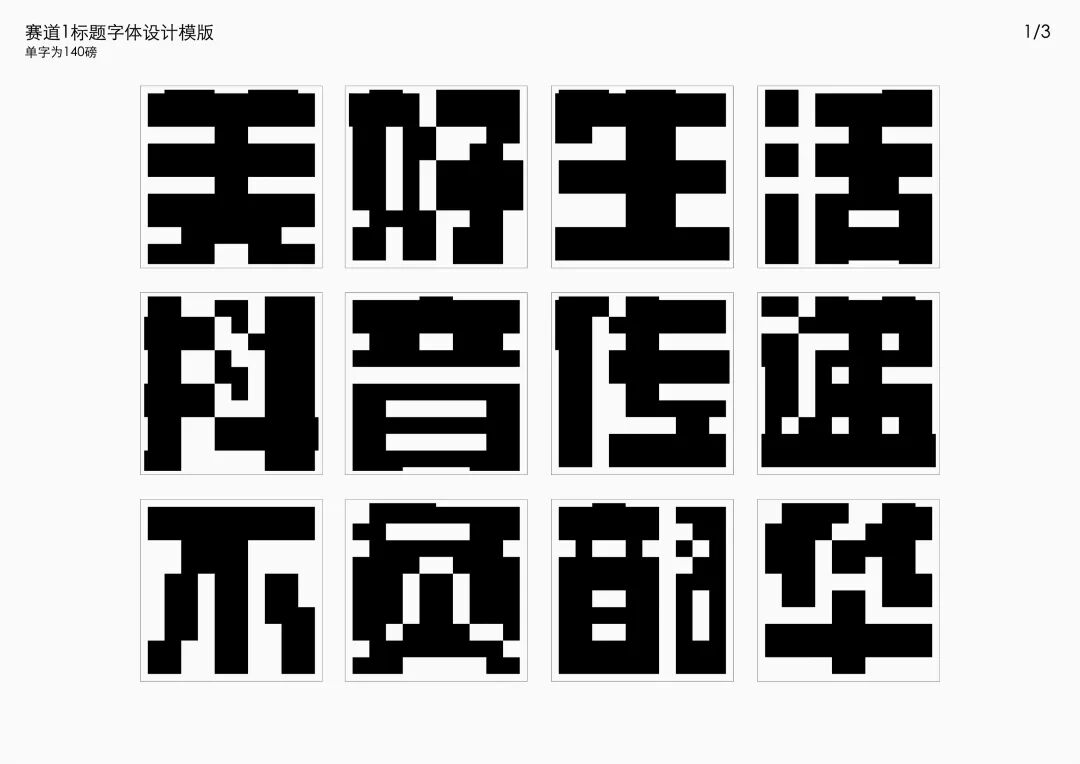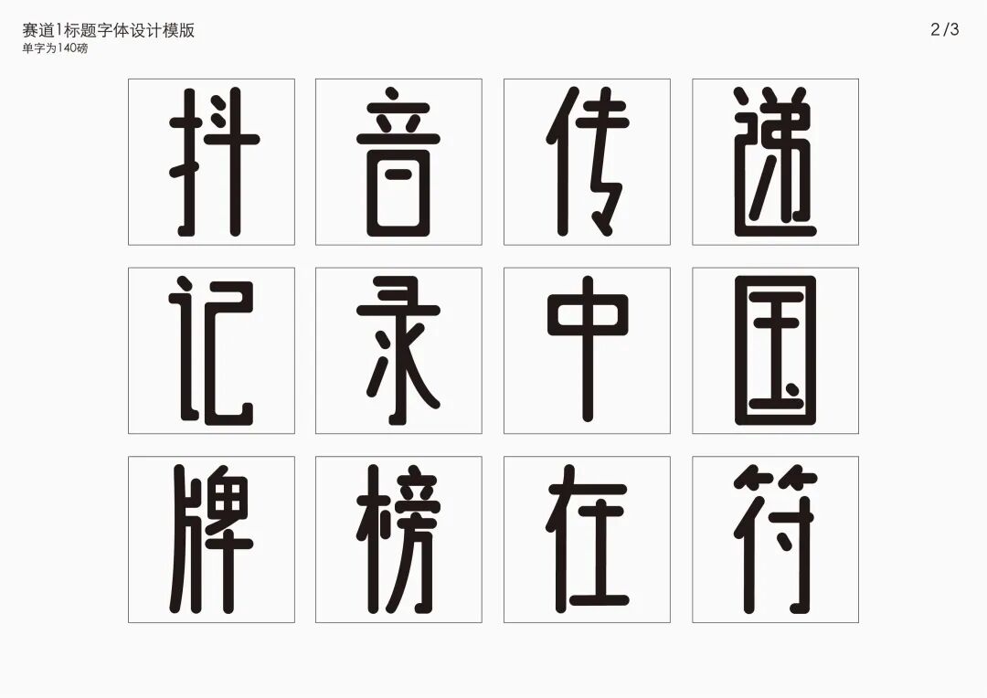 It is a modern experimental font facing the Internet communication environment. Each character is kept the same size in a strictly uniform grid. The font is tall and up-centered. The whole font strokes are composed of equal lines, and rounded corners and right angles coexist. In order to highlight the information content in the era where everything is displayed via screens, the font weight is large. On the whole, the font breaks the stroke form and structure of traditional Chinese characters, has a strong sense of geometry, and transmits the uniqueness of Chinese characters in a postmodern style.