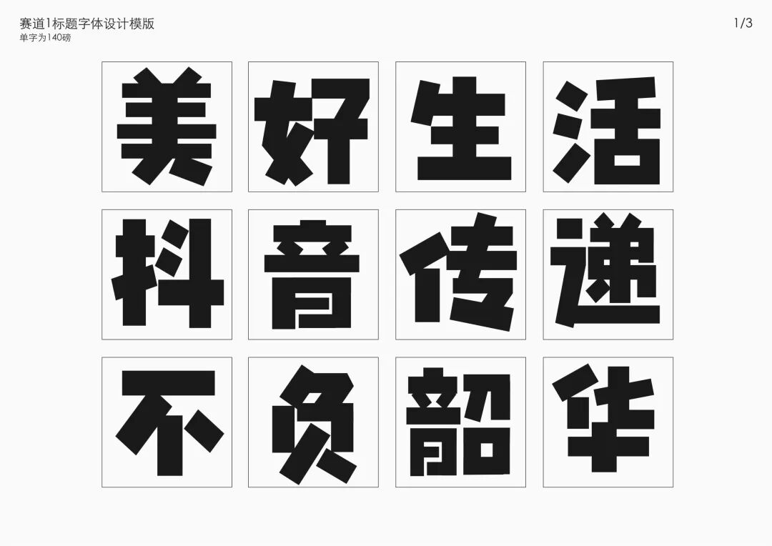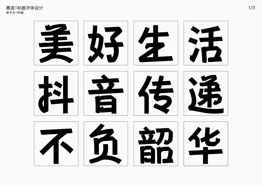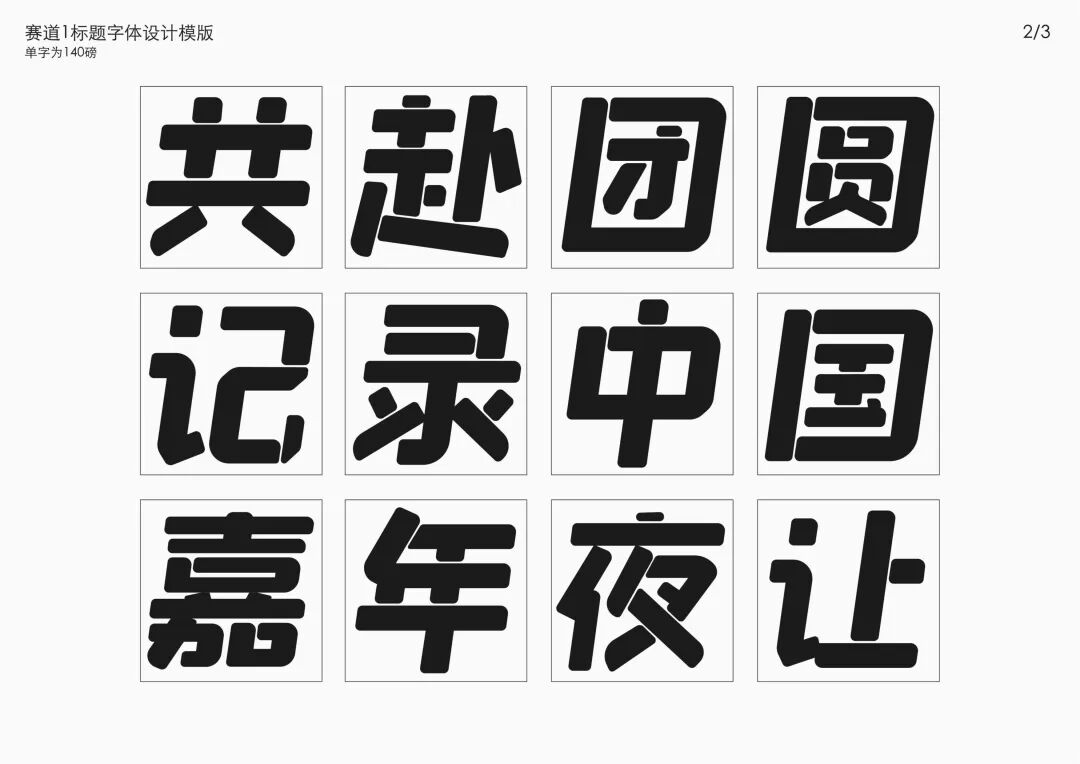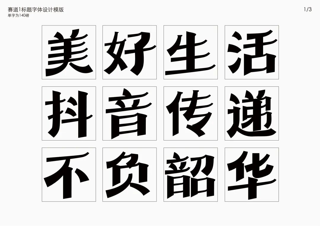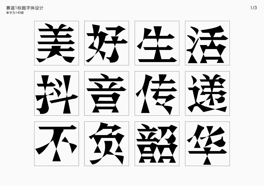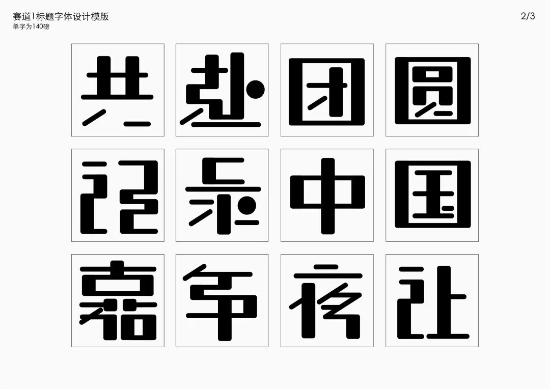 It is a modern experimental font facing the Internet communication environment. Each character is kept the same size in a strictly uniform grid. The font is tall and up-centered. The whole font strokes are composed of equal lines, and rounded corners and right angles coexist. In order to highlight the information content in the era where everything is displayed via screens, the font weight is large. On the whole, the font breaks the stroke form and structure of traditional Chinese characters, has a strong sense of geometry, and transmits the uniqueness of Chinese characters in a postmodern style.