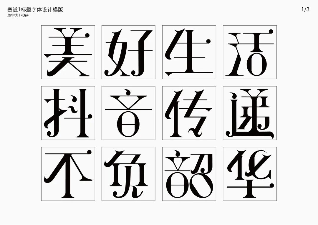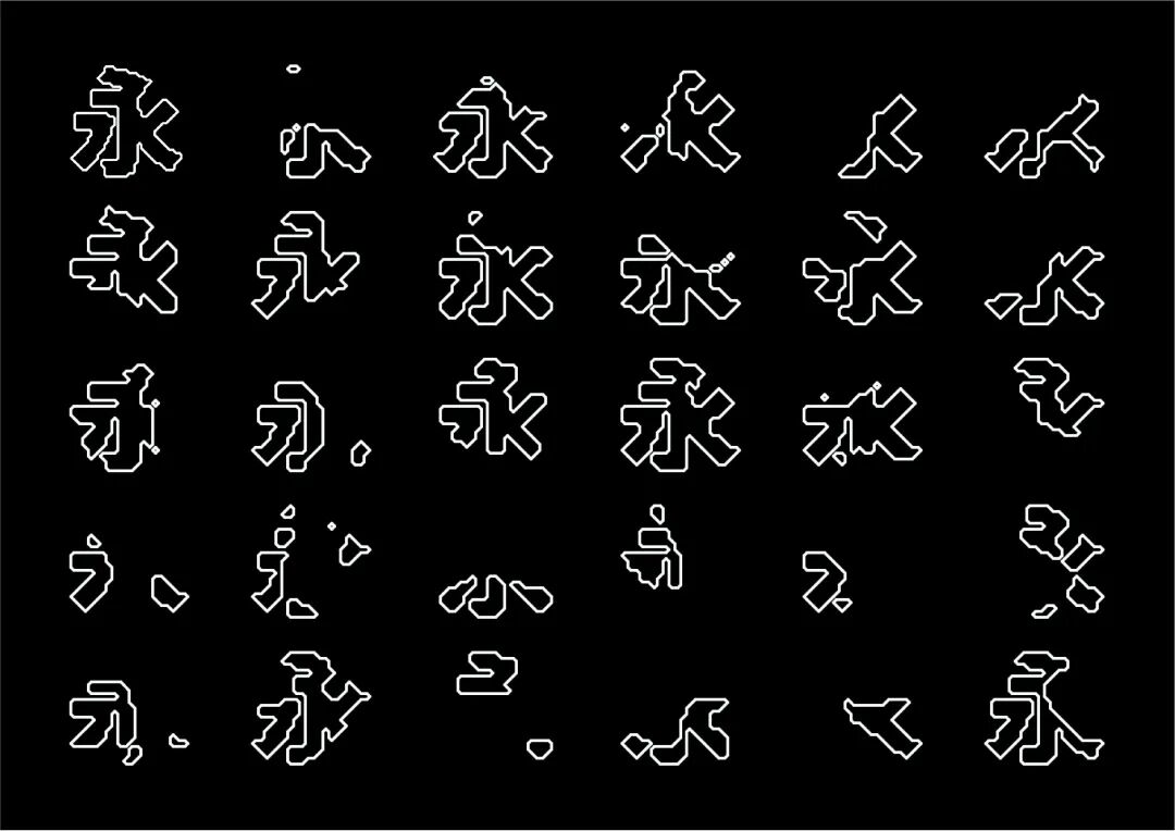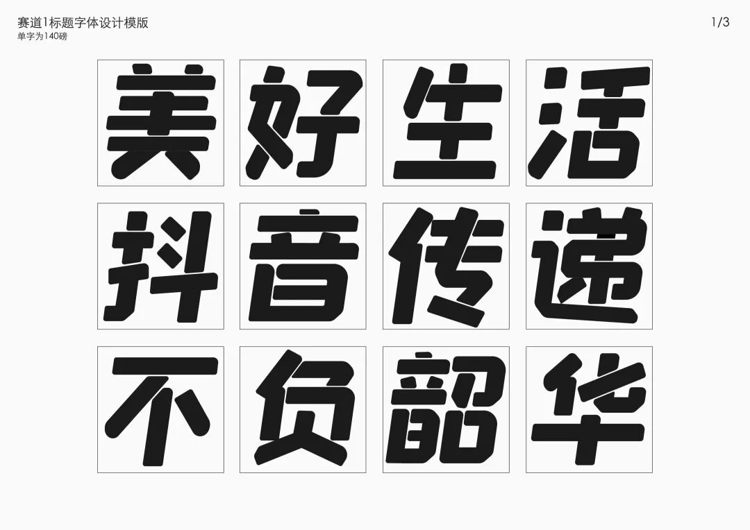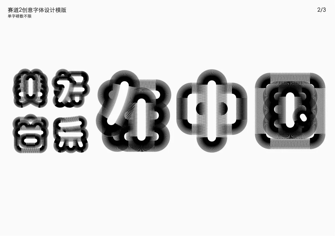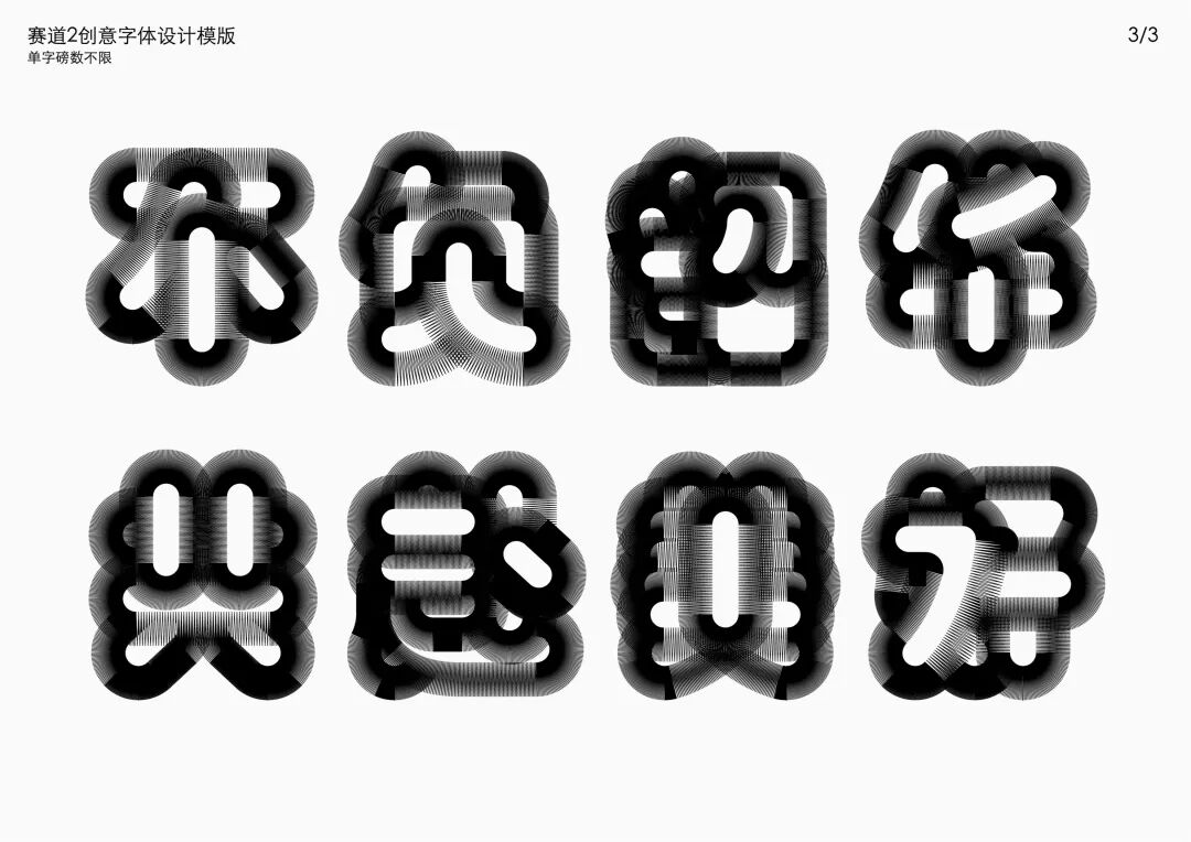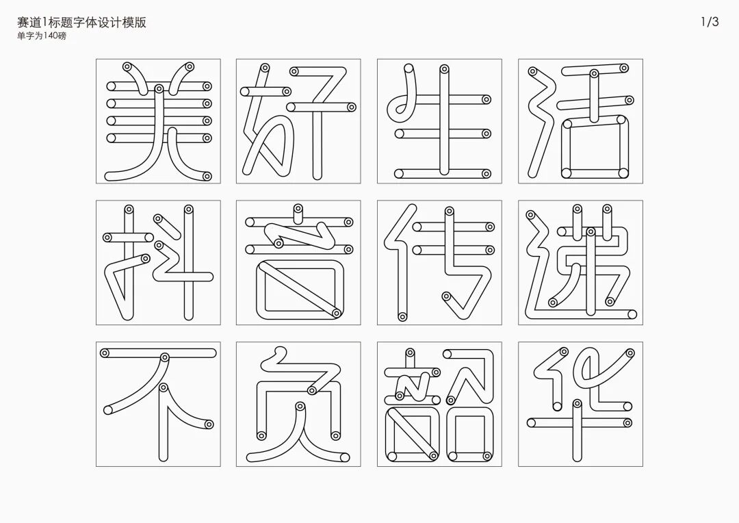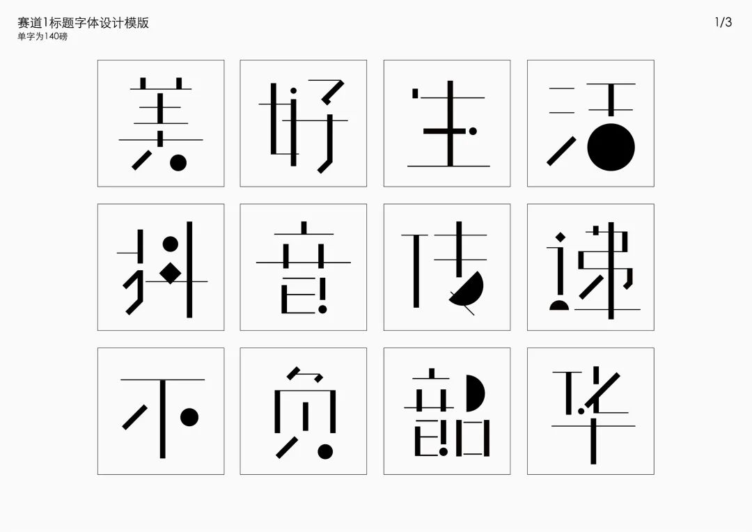 It is a modern experimental font facing the Internet communication environment. Each character is kept the same size in a strictly uniform grid. The font is tall and up-centered. The whole font strokes are composed of equal lines, and rounded corners and right angles coexist. In order to highlight the information content in the era where everything is displayed via screens, the font weight is large. On the whole, the font breaks the stroke form and structure of traditional Chinese characters, has a strong sense of geometry, and transmits the uniqueness of Chinese characters in a postmodern style.