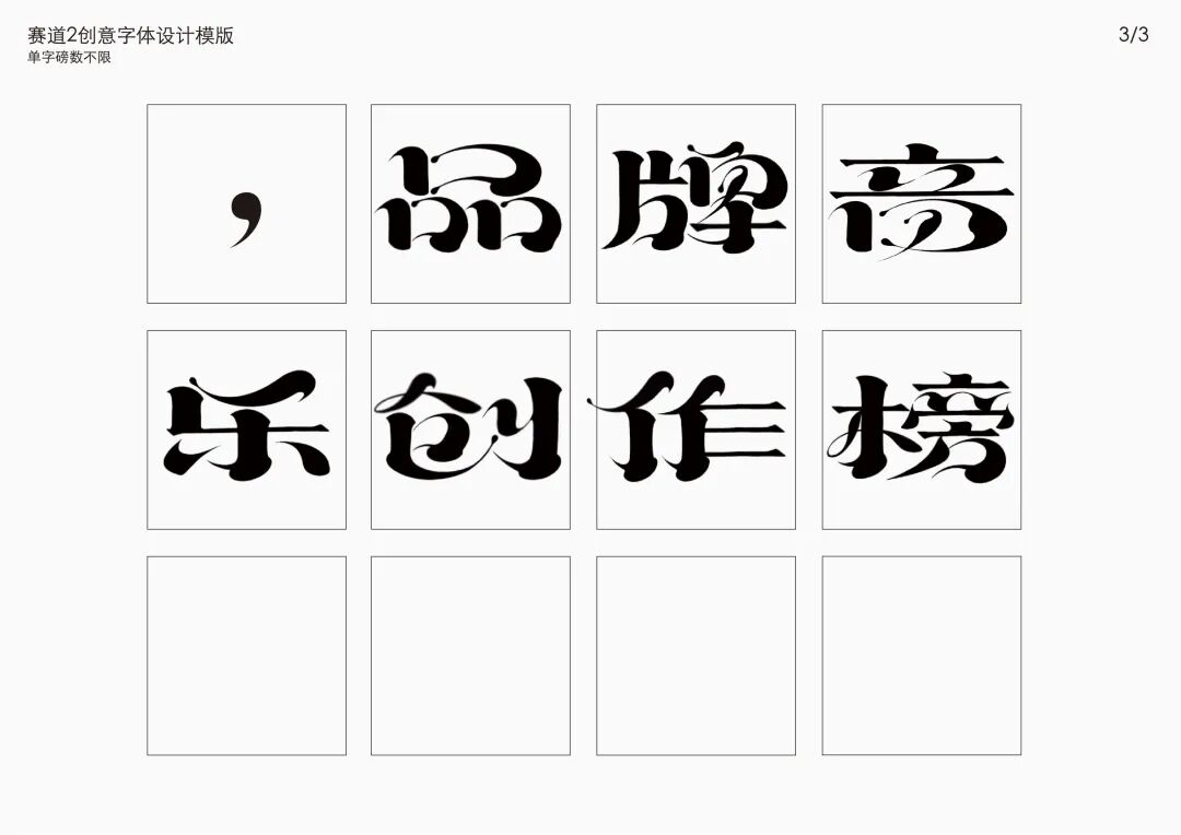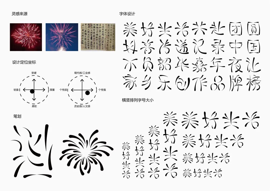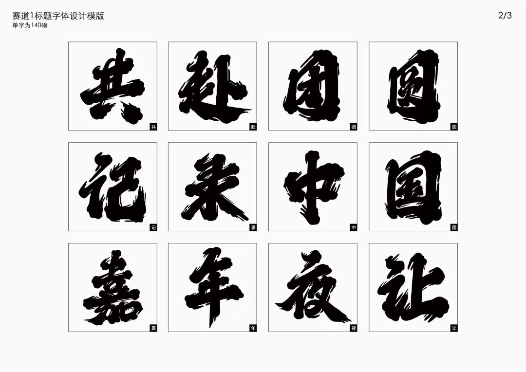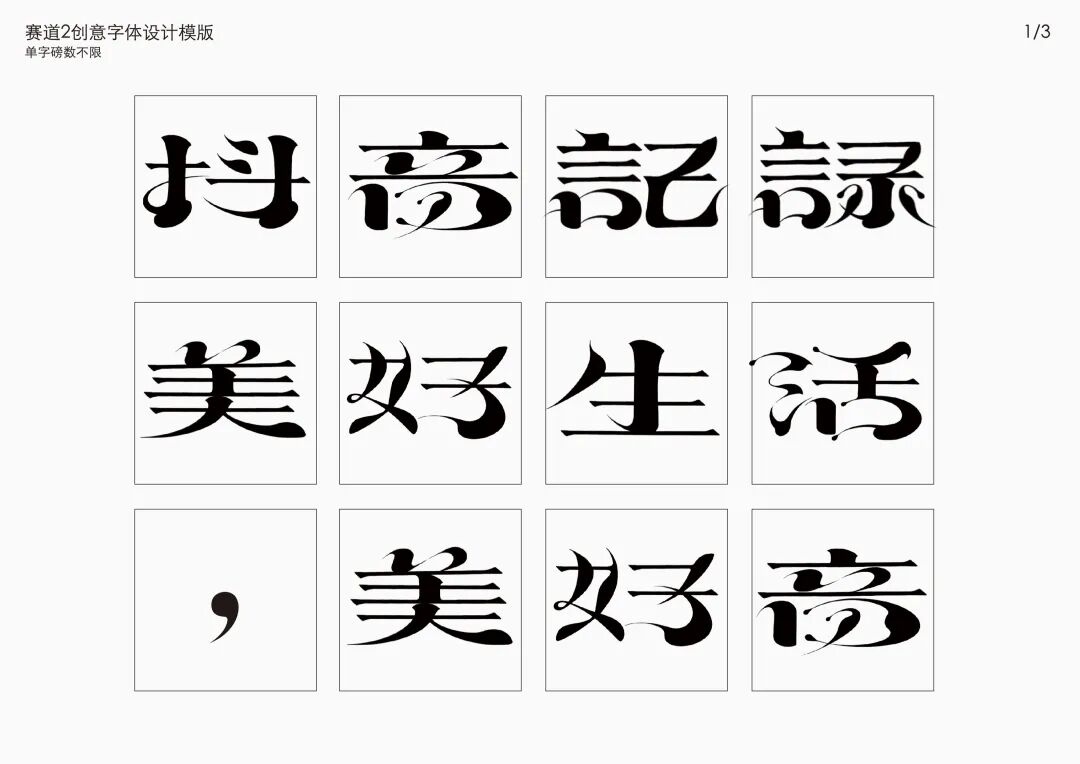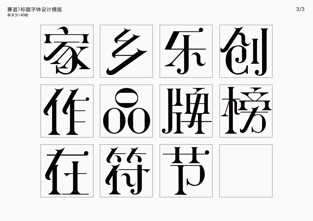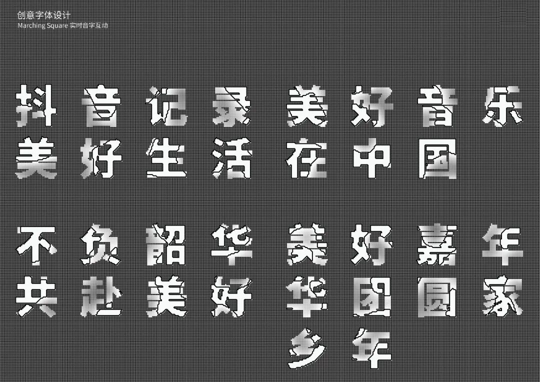It is a modern experimental font facing the Internet communication environment. Each character is kept the same size in a strictly uniform grid. The font is tall and up-centered. The whole font strokes are composed of equal lines, and rounded corners and right angles coexist. In order to highlight the information content in the era where everything is displayed via screens, the font weight is large. On the whole, the font breaks the stroke form and structure of traditional Chinese characters, has a strong sense of geometry, and transmits the uniqueness of Chinese characters in a postmodern style.
